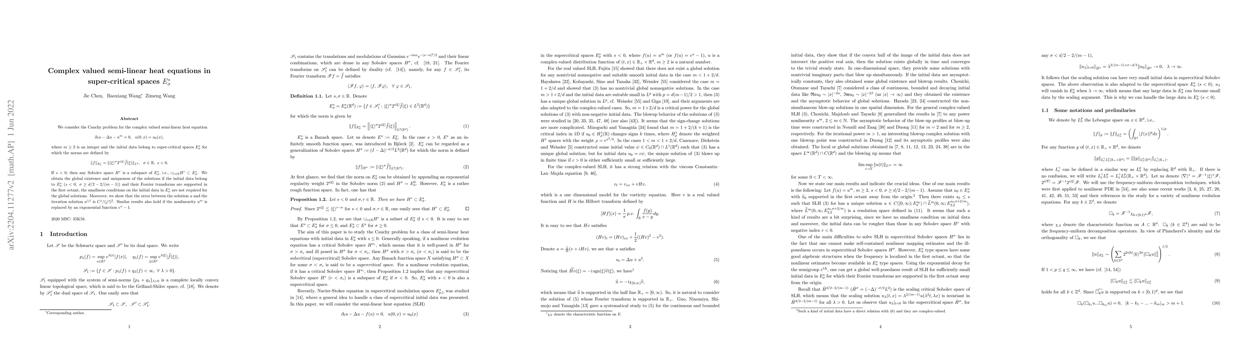 This research paper proves the global existence and uniqueness of solutions to a complex-valued semi-linear heat equation in super-critical spaces with certain initial data conditions.