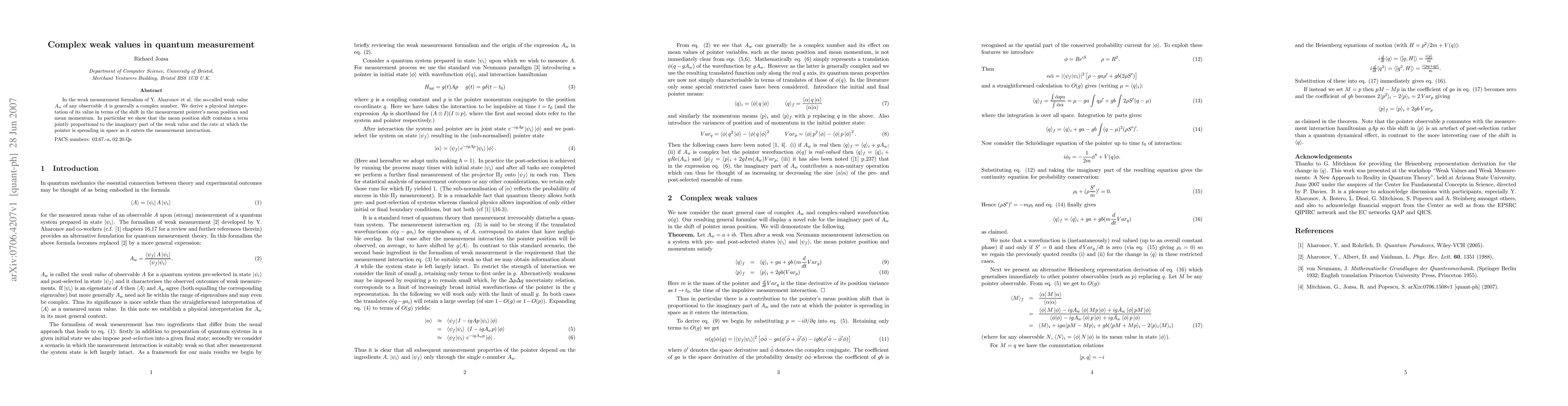Researchers derive a physical interpretation of complex weak values in quantum measurement, showing that the mean position shift is jointly proportional to the imaginary part of the weak value and pointer spreading rate.