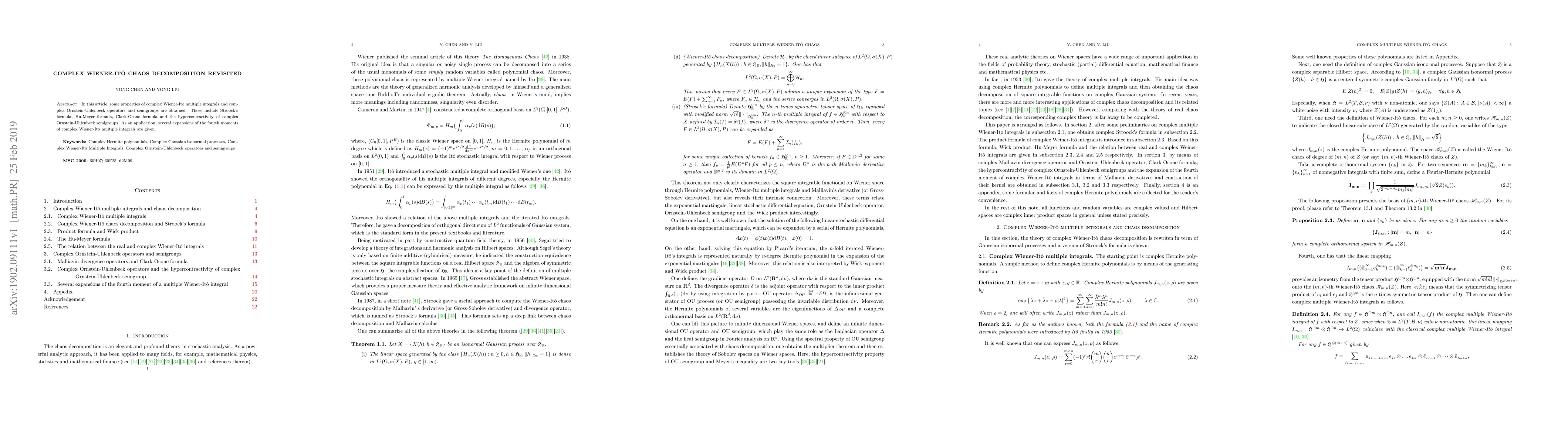 This paper revisits the properties of complex Wiener-Itô multiple integrals and Ornstein-Uhlenbeck operators, deriving Stroock's, Hu-Meyer, and Clark-Ocone formulas, and proving hypercontractivity. It also provides expansions for the fourth moments of complex Wiener-Itô multiple integrals.