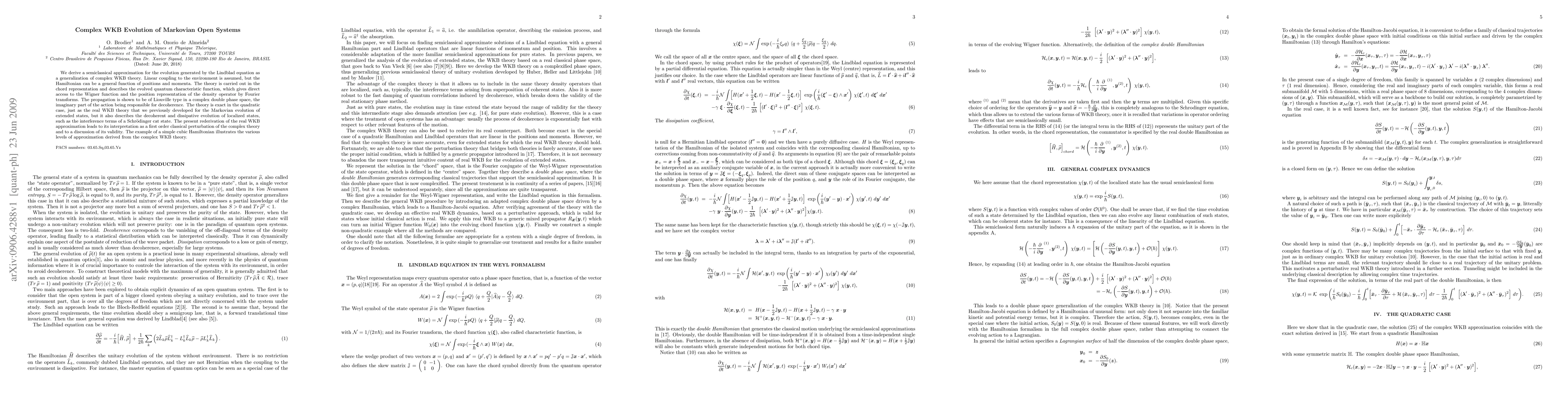 We derive a semiclassical approximation for the evolution generated by the Lindblad equation as a generalization of complex WKB theory. Linear coupling to the environment is assumed, but the Hamiltonian can be a general function of positions and momenta. The theory is carried out in the chord representation and describes the evolved quantum characteristic function, which gives direct access to the Wigner function and the position representation of the density operator by Fourier transforms. The propagation is shown to be of Liouville type in a complex double phase space, the imaginary part of the action being responsible for decoherence. The theory is exact in the quadratic case, just as the real WKB theory that we previously developed for the Markovian evolution of extended states, but it also describes the decoherent and dissipative evolution of localized states, such as the interference terms of a Schr\"odinger cat state. The present rederivation of the real WKB approximation leads to its interpretation as a first order classical perturbation of the complex theory and to a discussion of its validity. The example of a simple cubic Hamiltonian illustrates the various levels of approximation derived from the complex WKB theory.