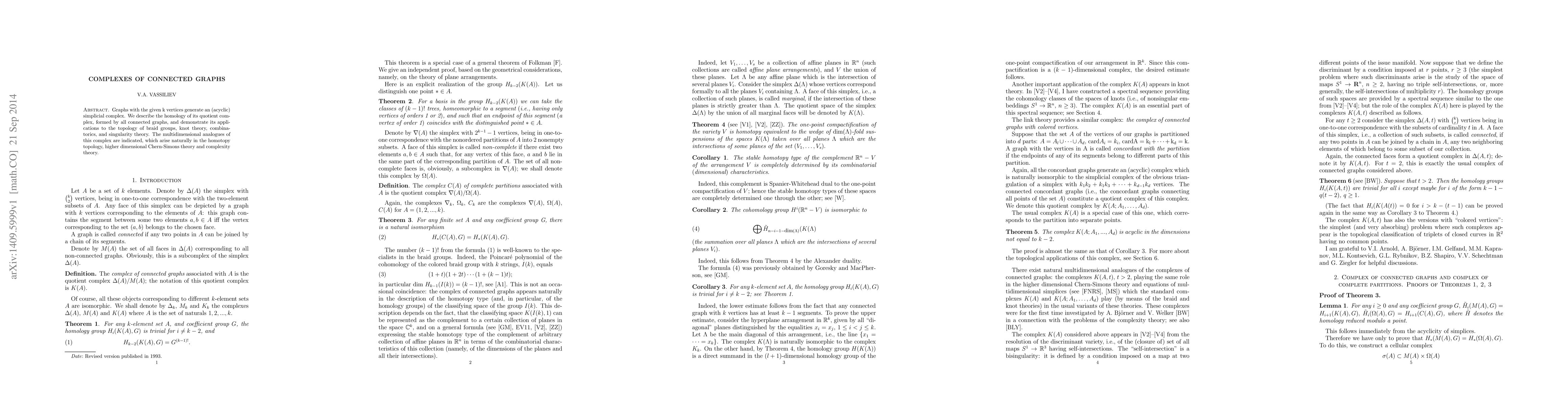 This paper explores the homology of simplicial complexes formed by connected graphs with k vertices, demonstrating applications in braid groups, knot theory, combinatorics, and singularity theory. It also discusses multidimensional analogues relevant to homotopy theory, higher Chern-Simons theory, and complexity theory.