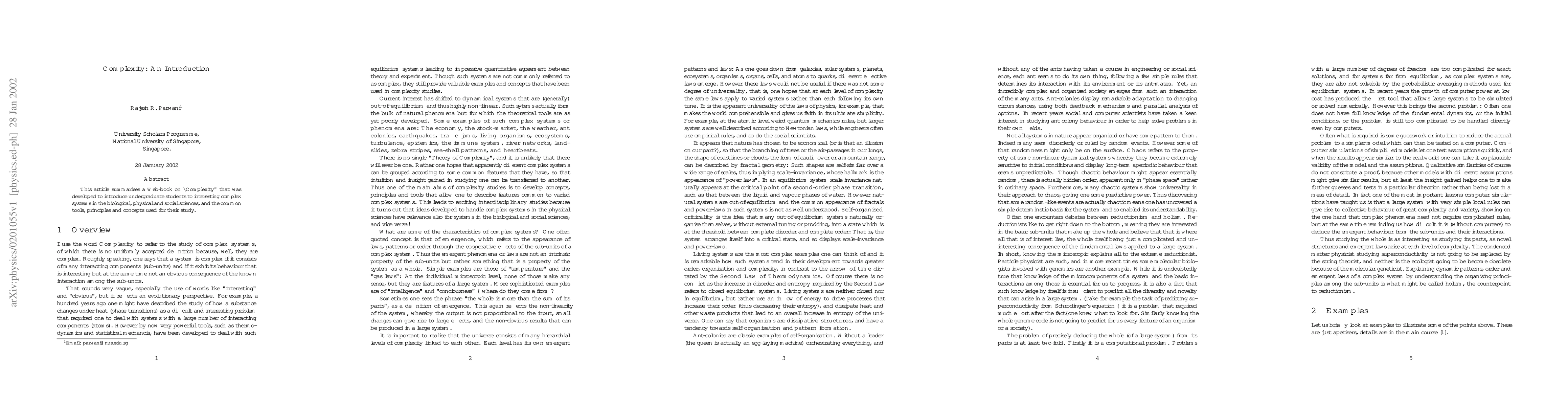 This article summarises a Web-book on "Complexity" that was developed to introduce undergraduate students to interesting complex systems in the biological, physical and social sciences, and the common tools, principles and concepts used for their study.