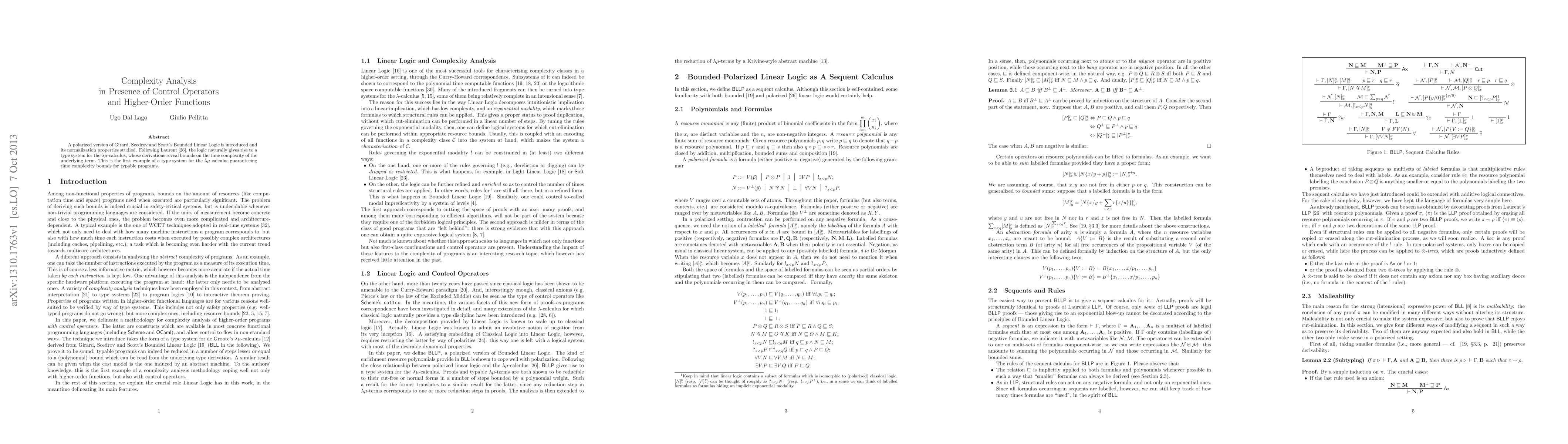 A polarized version of Girard, Scedrov and Scott's Bounded Linear Logic is introduced and its normalization properties studied. Following Laurent, the logic naturally gives rise to a type system for the lambda-mu-calculus, whose derivations reveal bounds on the time complexity of the underlying term. This is the first example of a type system for the lambda-mu-calculus guaranteeing time complexity bounds for typable programs.