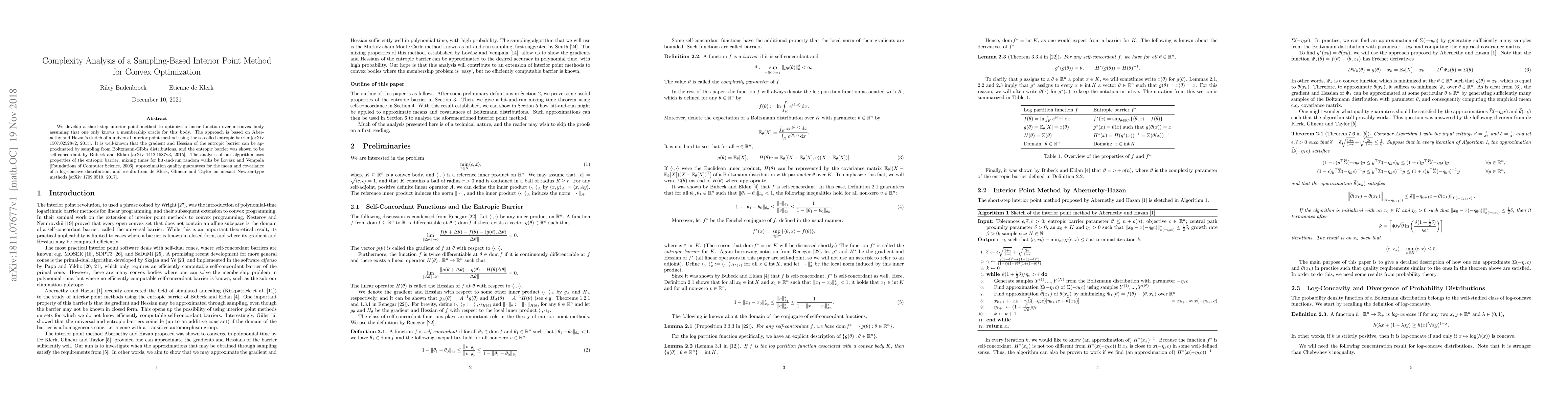 We develop a short-step interior point method to optimize a linear function over a convex body assuming that one only knows a membership oracle for this body. The approach is based on Abernethy and Hazan's sketch of a universal interior point method using the so-called entropic barrier [arXiv 1507.02528v2, 2015]. It is well-known that the gradient and Hessian of the entropic barrier can be approximated by sampling from Boltzmann-Gibbs distributions, and the entropic barrier was shown to be self-concordant by Bubeck and Eldan [arXiv 1412.1587v3, 2015]. The analysis of our algorithm uses properties of the entropic barrier, mixing times for hit-and-run random walks by Lov\'asz and Vempala [Foundations of Computer Science, 2006], approximation quality guarantees for the mean and covariance of a log-concave distribution, and results from De Klerk, Glineur and Taylor on inexact Newton-type methods [arXiv 1709.0519, 2017].