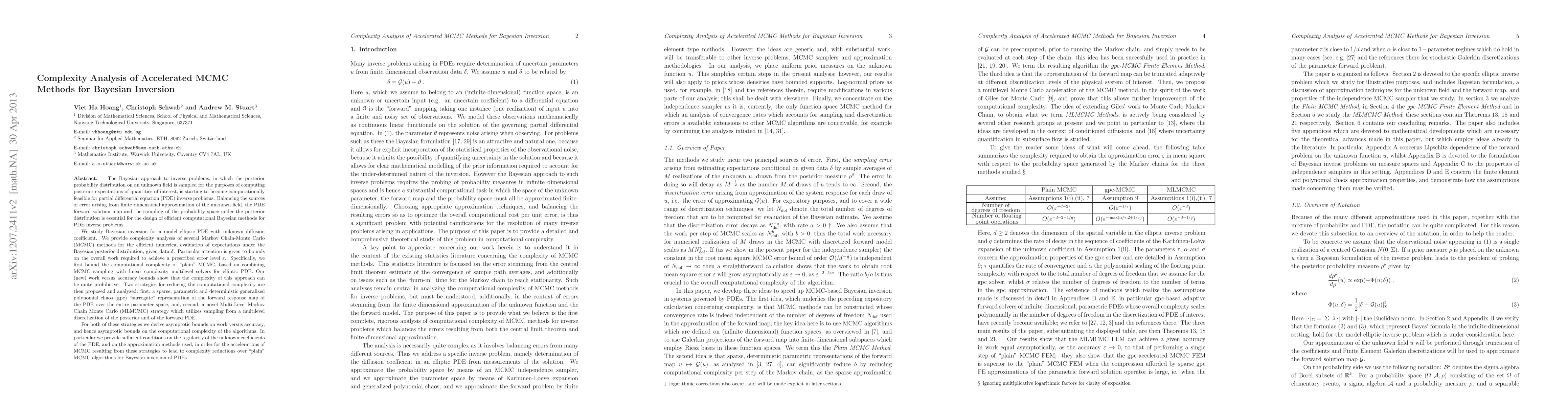 This paper analyzes the complexity of Markov Chain-Monte Carlo (MCMC) methods for Bayesian inversion of elliptic PDEs with unknown diffusion coefficients. It finds that traditional MCMC methods are computationally prohibitive and proposes two strategies for improvement: a sparse generalized polynomial chaos surrogate and a novel Multi-Level MCMC approach, both of which provide asymptotic bounds on computational complexity reductions.