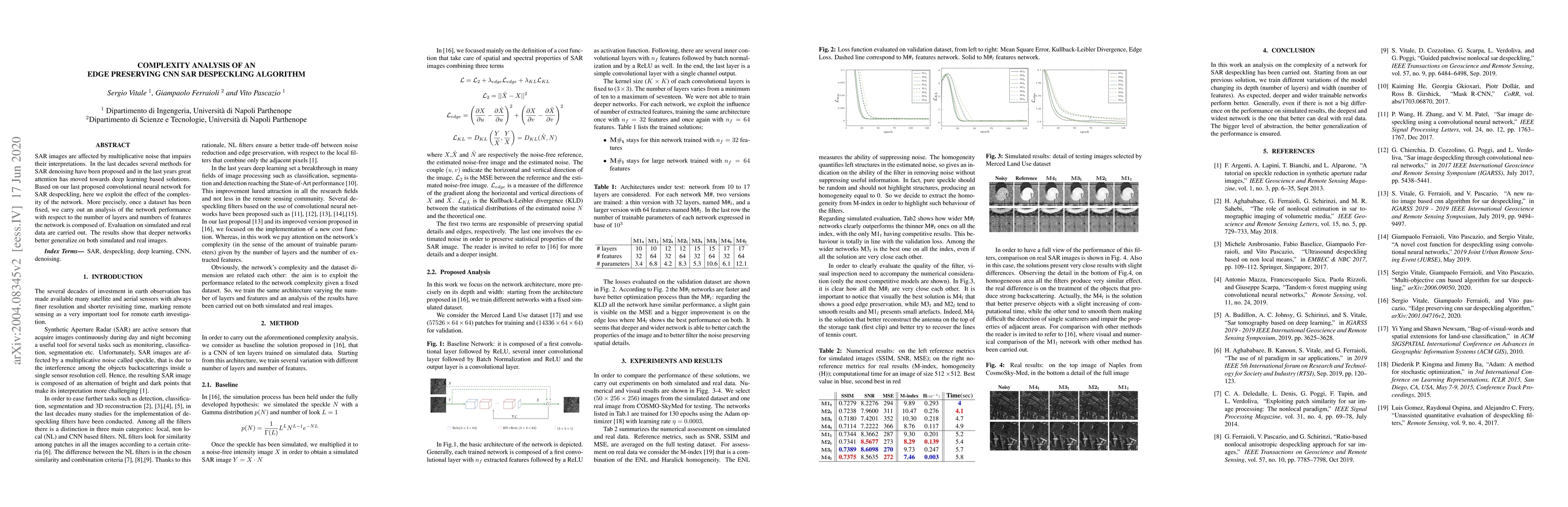 This research paper investigates the complexity of a convolutional neural network (CNN) designed for synthetic aperture radar (SAR) image despeckling. The study analyzes how network depth and feature count impact performance, demonstrating that deeper networks achieve better generalization on both simulated and real SAR images. For detailed findings and methodologies, refer to the full paper.