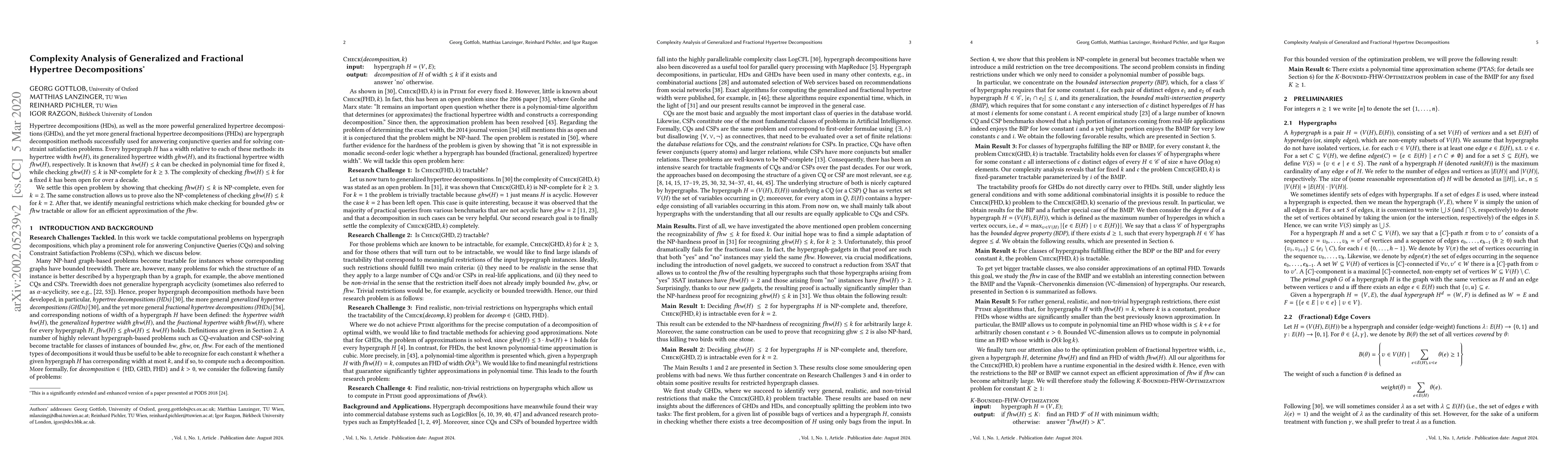 This paper proves that checking the fractional hypertree width (FHW) of a hypergraph is NP-complete, even for fixed k=2, resolving a long-standing open problem. It also establishes the NP-completeness of checking generalized hypertree width (GHW) for k=2 using the same construction, and identifies restrictions that make these problems tractable or allow efficient FHW approximation.