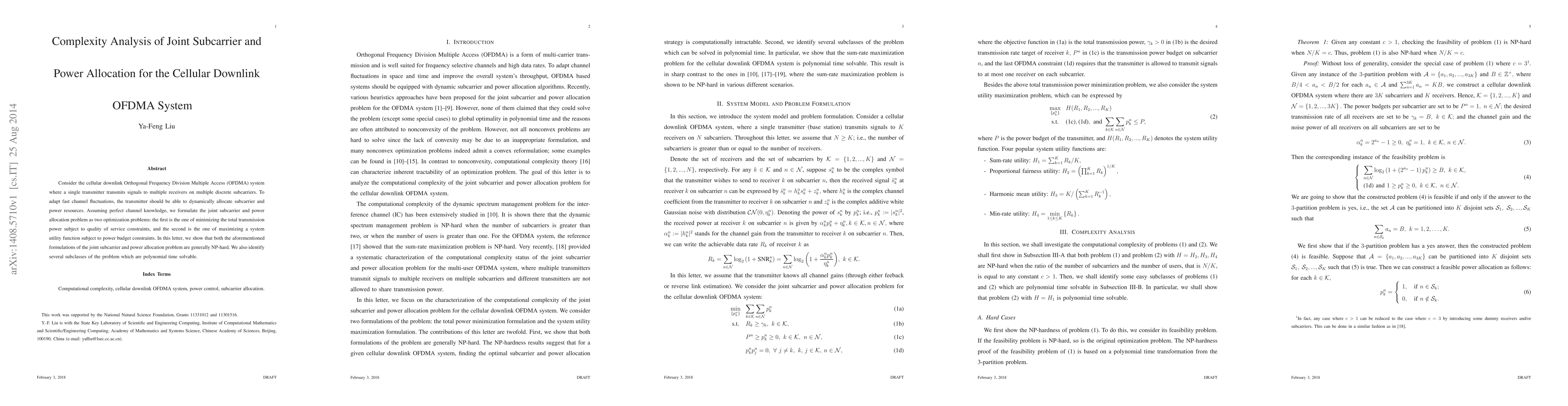 This paper analyzes the complexity of joint subcarrier and power allocation in cellular downlink OFDMA systems, demonstrating that the optimization problems are NP-hard but identifying polynomial time solvable subclasses. Perfect channel knowledge is assumed for dynamic resource allocation.