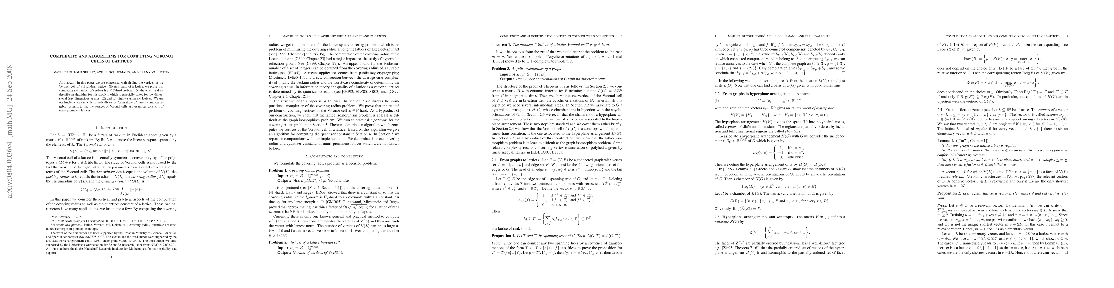 This research is significant as it provides a deeper understanding of the computational complexity of lattice-related problems and offers an efficient algorithm for computing Voronoi cells, which have applications in various fields including signal processing, coding theory, and crystallography.