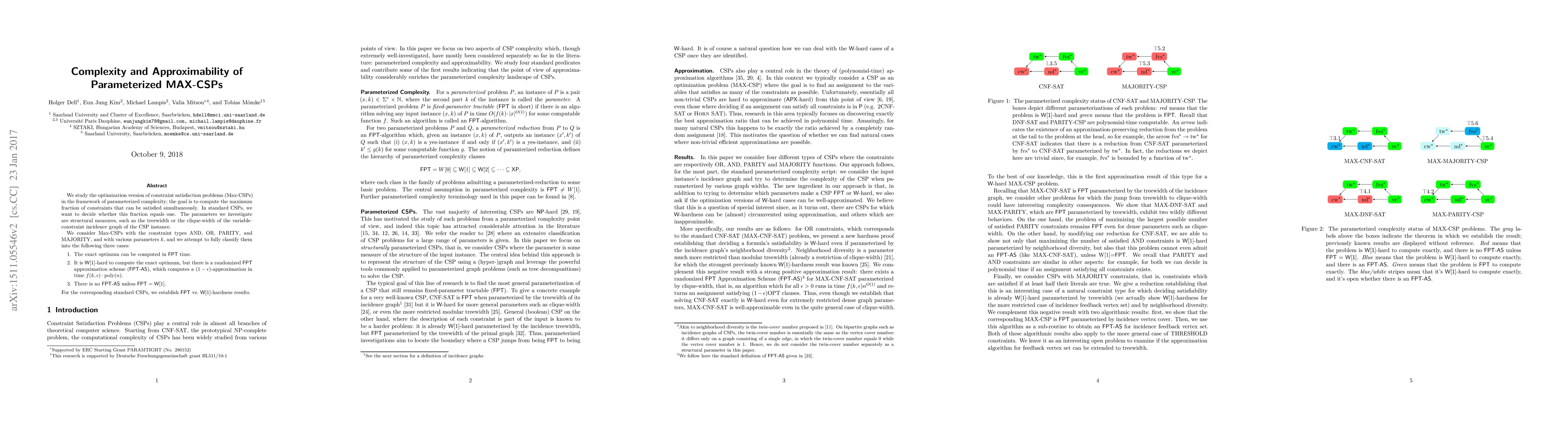 This paper explores the optimization version of constraint satisfaction problems (Max-CSPs) within parameterized complexity, focusing on computing the maximum fraction of constraints that can be satisfied. It classifies the complexity of Max-CSPs with various constraint types and parameters, establishing exact computation, randomized approximation schemes, and inapproximability results under certain complexity assumptions.