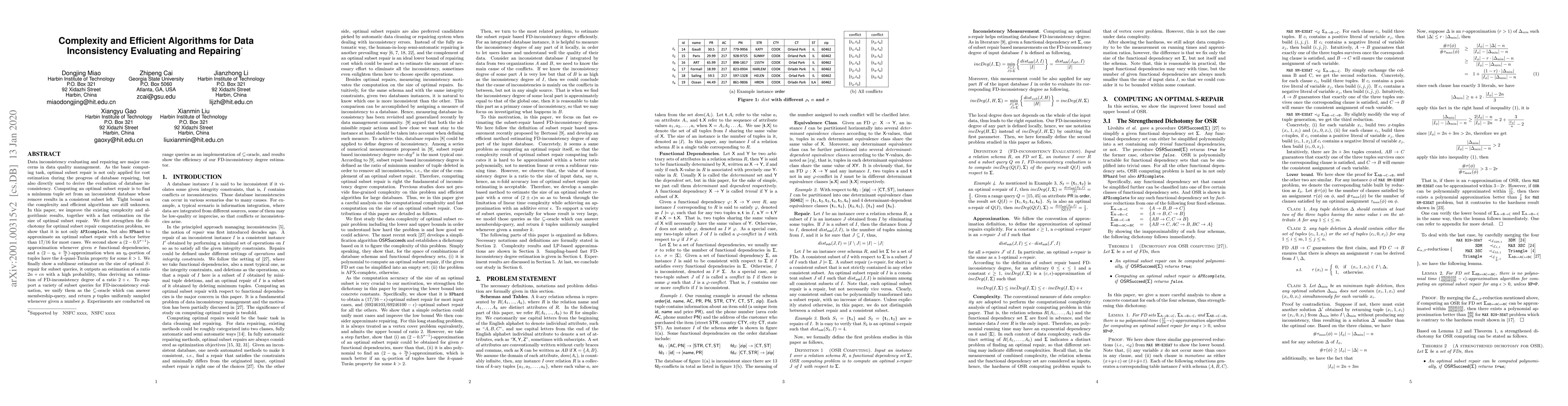 Data inconsistency evaluating and repairing are major concerns in data quality management. As the basic computing task, optimal subset repair is not only applied for cost estimation during the progress of database repairing, but also directly used to derive the evaluation of database inconsistency. Computing an optimal subset repair is to find a minimum tuple set from an inconsistent database whose remove results in a consistent subset left. Tight bound on the complexity and efficient algorithms are still unknown. In this paper, we improve the existing complexity and algorithmic results, together with a fast estimation on the size of optimal subset repair. We first strengthen the dichotomy for optimal subset repair computation problem, we show that it is not only APXcomplete, but also NPhard to approximate an optimal subset repair with a factor better than $17/16$ for most cases. We second show a $(2-0.5^{\tiny\sigma-1})$-approximation whenever given $\sigma$ functional dependencies, and a $(2-\eta_k+\frac{\eta_k}{k})$-approximation when an $\eta_k$-portion of tuples have the $k$-quasi-Tur$\acute{\text{a}}$n property for some $k>1$. We finally show a sublinear estimator on the size of optimal \textit{S}-repair for subset queries, it outputs an estimation of a ratio $2n+\epsilon n$ with a high probability, thus deriving an estimation of FD-inconsistency degree of a ratio $2+\epsilon$. To support a variety of subset queries for FD-inconsistency evaluation, we unify them as the $\subseteq$-oracle which can answer membership-query, and return $p$ tuples uniformly sampled whenever given a number $p$. Experiments are conducted on range queries as an implementation of $\subseteq$-oracle, and results show the efficiency of our FD-inconsistency degree estimator.