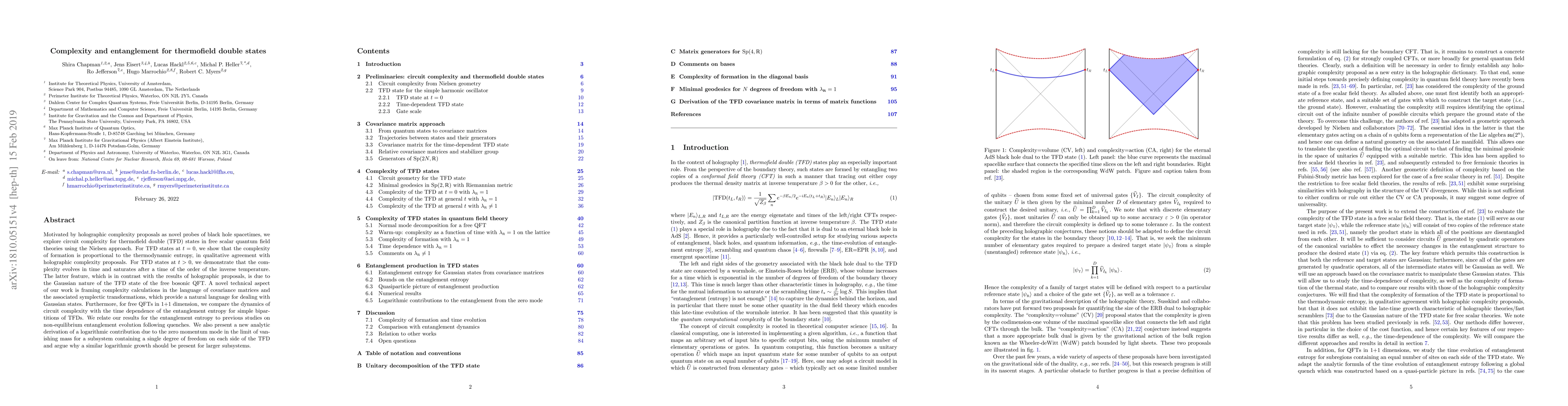 Motivated by holographic complexity proposals as novel probes of black hole spacetimes, we explore circuit complexity for thermofield double (TFD) states in free scalar quantum field theories using the Nielsen approach. For TFD states at t = 0, we show that the complexity of formation is proportional to the thermodynamic entropy, in qualitative agreement with holographic complexity proposals. For TFD states at t > 0, we demonstrate that the complexity evolves in time and saturates after a time of the order of the inverse temperature. The latter feature, which is in contrast with the results of holographic proposals, is due to the Gaussian nature of the TFD state of the free bosonic QFT. A novel technical aspect of our work is framing complexity calculations in the language of covariance matrices and the associated symplectic transformations, which provide a natural language for dealing with Gaussian states. Furthermore, for free QFTs in 1+1 dimension, we compare the dynamics of circuit complexity with the time dependence of the entanglement entropy for simple bipartitions of TFDs. We relate our results for the entanglement entropy to previous studies on non-equilibrium entanglement evolution following quenches. We also present a new analytic derivation of a logarithmic contribution due to the zero momentum mode in the limit of vanishing mass for a subsystem containing a single degree of freedom on each side of the TFD and argue why a similar logarithmic growth should be present for larger subsystems.