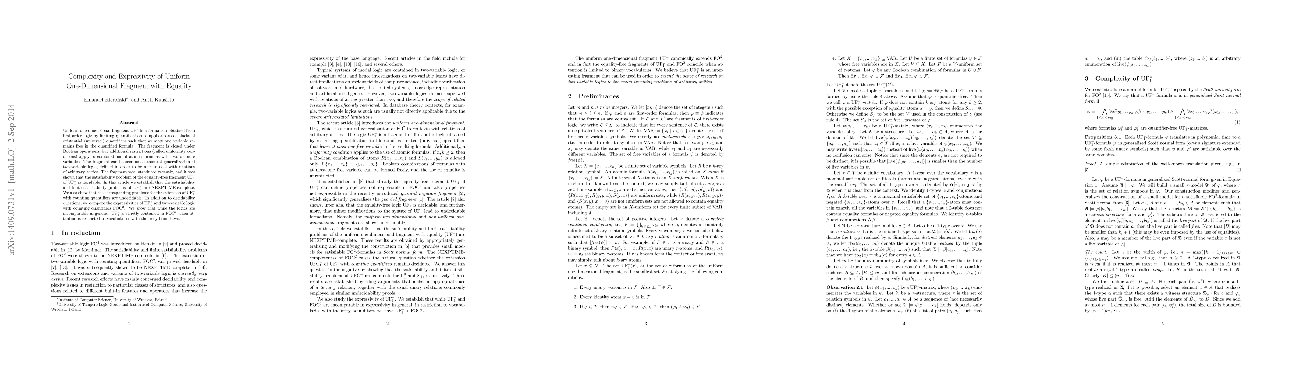A recent study has shown that Uniform One-Dimensional Fragment UF1^= is NEXPTIME-complete for satisfiability and finite satisfiability problems, while its extension with counting quantifiers is undecidable, offering insights into the expressivity of first-order logic with restricted quantification.