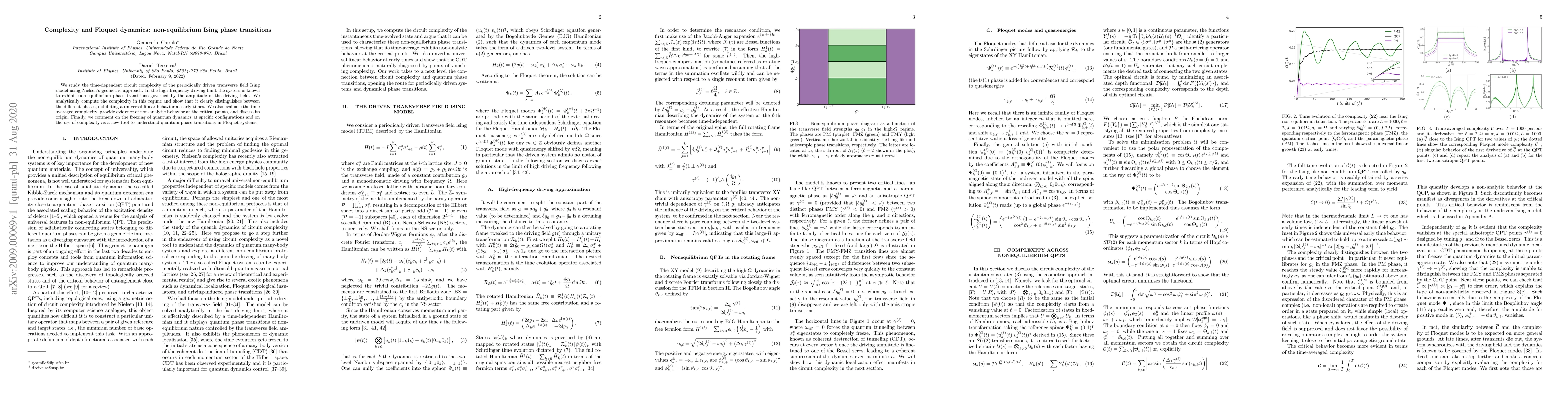 This paper investigates the time-dependent circuit complexity in the periodically driven transverse field Ising model, revealing a universal linear behavior at early times that distinguishes different phases. It also highlights non-analytic complexity behavior at critical points and discusses the freezing of quantum dynamics, proposing complexity as a novel tool for understanding quantum phase transitions in Floquet systems.