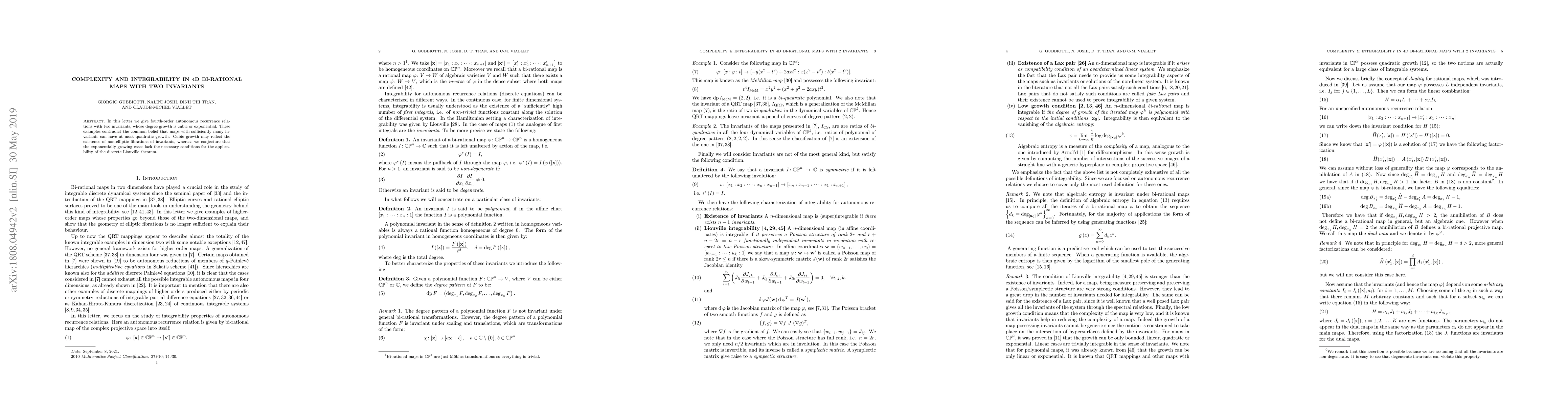 In this letter we give fourth-order autonomous recurrence relations with two invariants, whose degree growth is cubic or exponential. These examples contradict the common belief that maps with sufficiently many invariants can have at most quadratic growth. Cubic growth may reflect the existence of non-elliptic fibrations of invariants, whereas we conjecture that the exponentially growing cases lack the necessary conditions for the applicability of the discrete Liouville theorem.