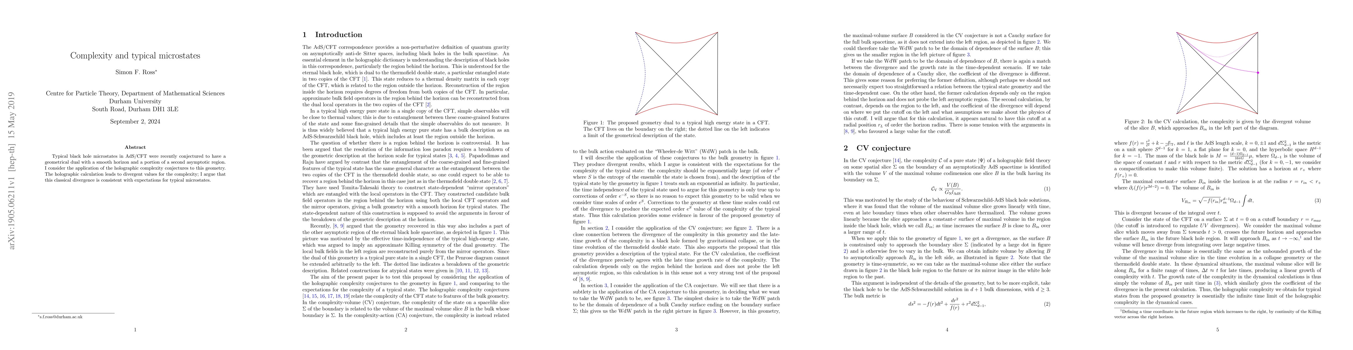 This paper explores the holographic complexity conjectures applied to typical black hole microstates in AdS/CFT, finding that the resulting geometric dual exhibits a smooth horizon and an additional asymptotic region. The calculation reveals divergent complexity values, which the author argues align with expectations for typical microstates.