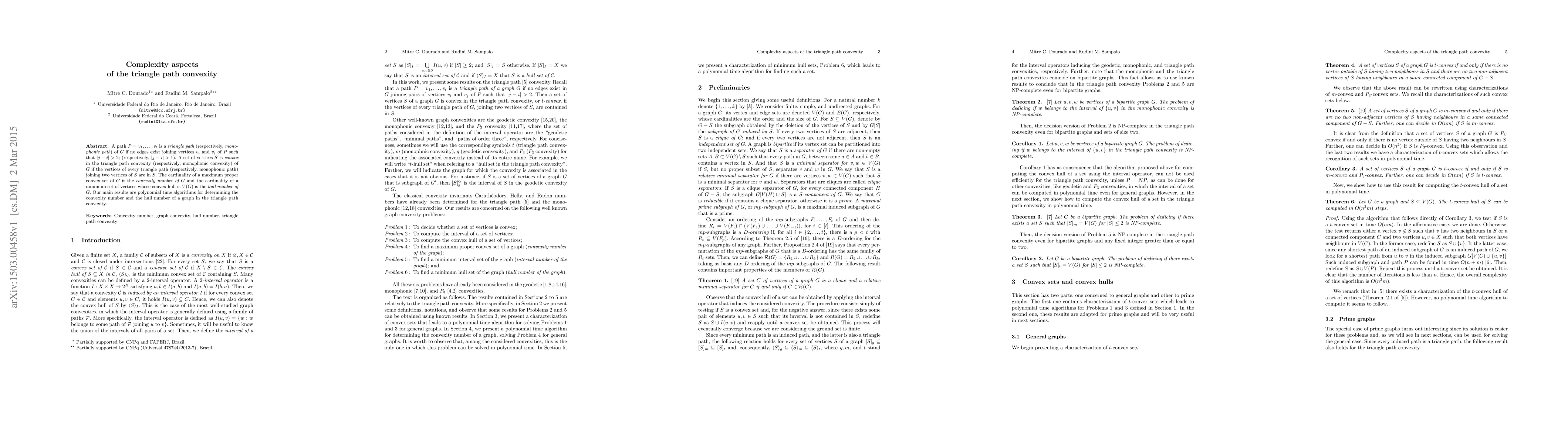 A new algorithmic approach has been developed to determine the size of the largest set of vertices that form a convex triangle path in any given graph, as well as the smallest set of vertices whose convex hull is the entire graph.