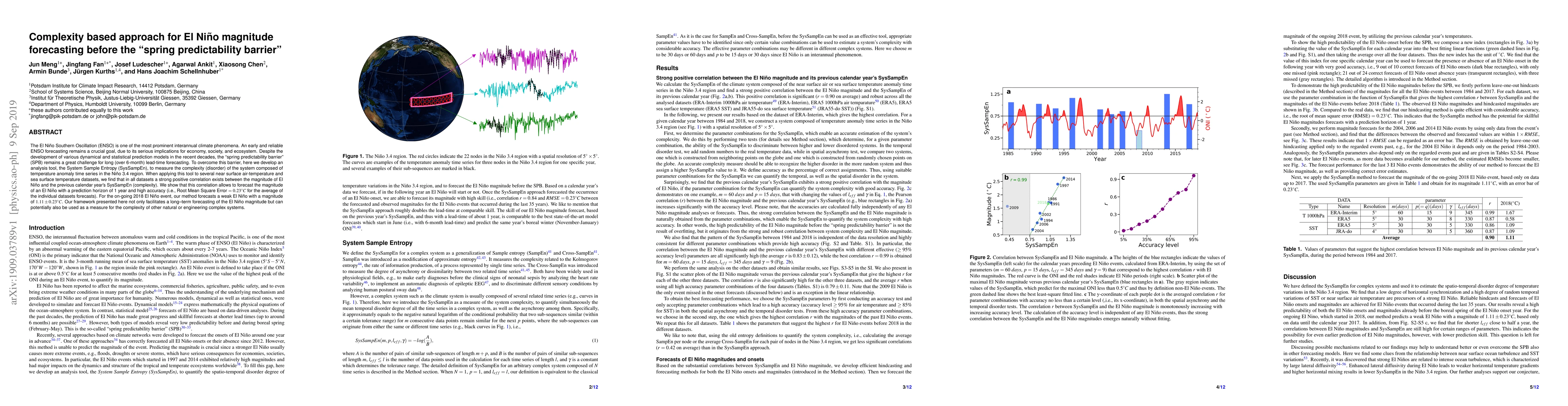 This paper introduces a complexity-based approach using System Sample Entropy to forecast El Nino magnitude before the spring predictability barrier, achieving high accuracy with a RMSE of $0.23^\circ C$. The method correlates El Nino magnitude with the previous year's complexity, enabling a 1-year lead forecast.