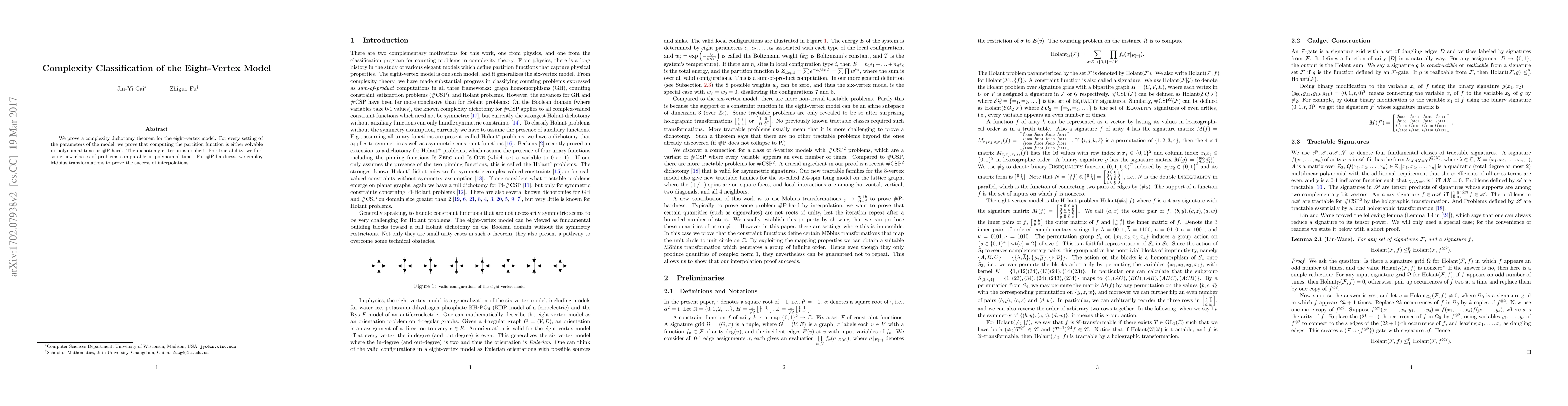 We prove a complexity dichotomy theorem for the eight-vertex model. For every setting of the parameters of the model, we prove that computing the partition function is either solvable in polynomial time or \#P-hard. The dichotomy criterion is explicit. For tractability, we find some new classes of problems computable in polynomial time. For \#P-hardness, we employ M\"{o}bius transformations to prove the success of interpolations.
