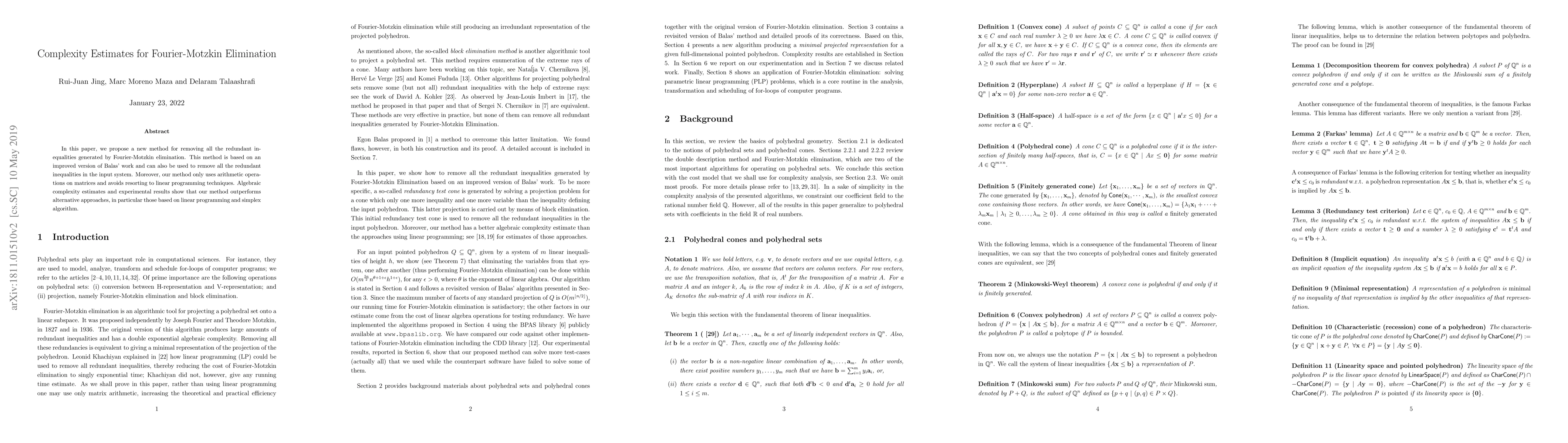 This paper introduces a new method for eliminating redundant inequalities from Fourier-Motzkin elimination, improving upon Balas' work and avoiding linear programming. Experimental results demonstrate its superior performance over existing methods, particularly those relying on linear programming.