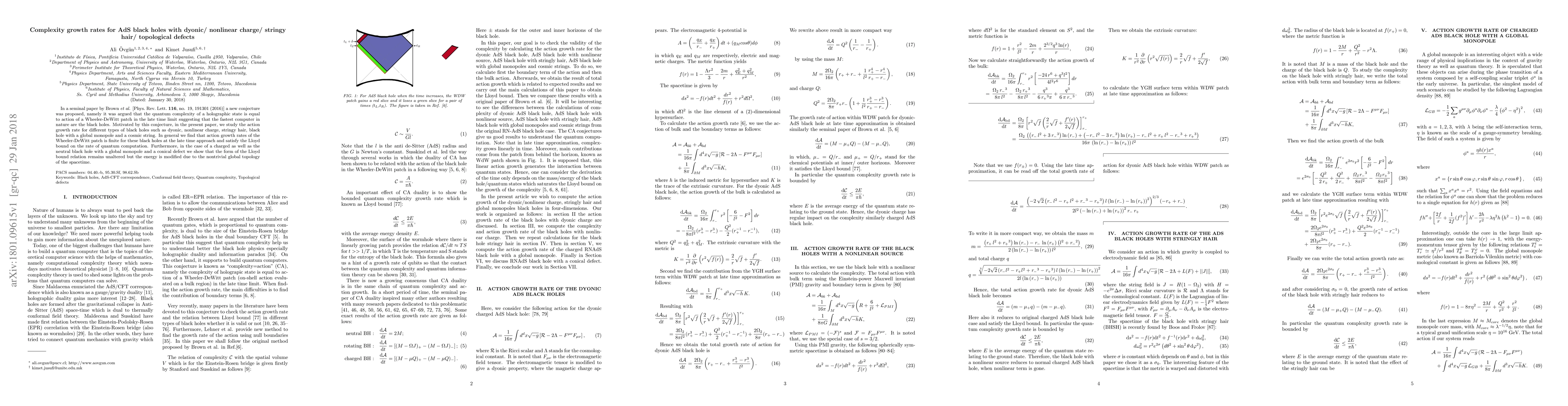 In a seminal paper by Brown et al. [Phys. Rev. Lett. 116, no. 19, 191301 (2016)] a new conjecture was proposed, namely it was argued that the quantum complexity of a holographic state is equal to action of a Wheeler-DeWitt patch in the late time limit suggesting that the fastest computer in nature are the black holes. Motivated by this conjecture, in the present paper, we study the action growth rate for different types of black holes such as dyonic, nonlinear charge, stringy hair, black hole with a global monopole and a cosmic string. In general we find that action growth rates of the Wheeler-DeWitt patch is finite for these black holes at the late time approach and satisfy the Lloyd bound on the rate of quantum computation. Furthermore, in the case of a charged as well as the neutral black hole with a global monopole and a conical defect we show that the form of the Lloyd bound relation remains unaltered but the energy is modified due to the nontrivial global topology of the spacetime.