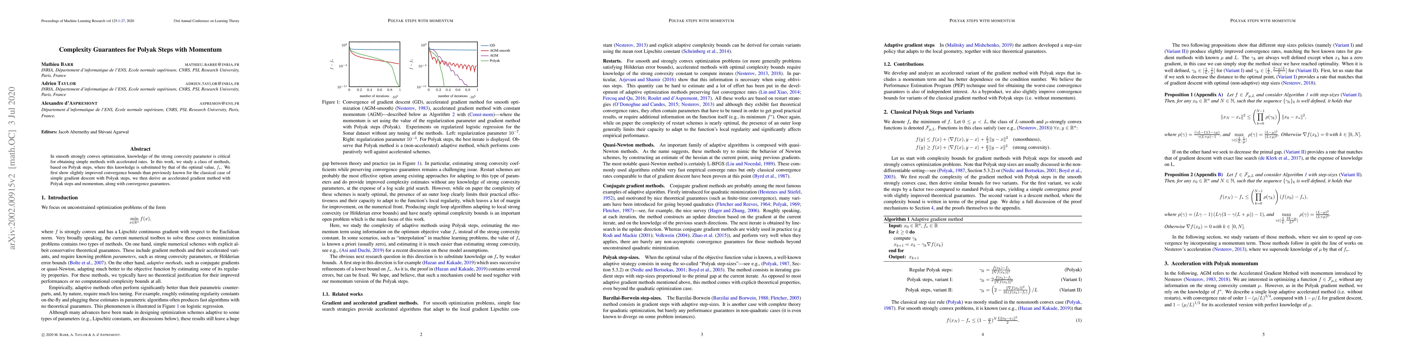 This paper investigates optimization methods based on Polyak steps that do not require knowledge of the strong convexity parameter, instead relying on the optimal value. It presents improved convergence bounds for gradient descent with Polyak steps and introduces an accelerated gradient method with Polyak steps and momentum, providing associated convergence guarantees.