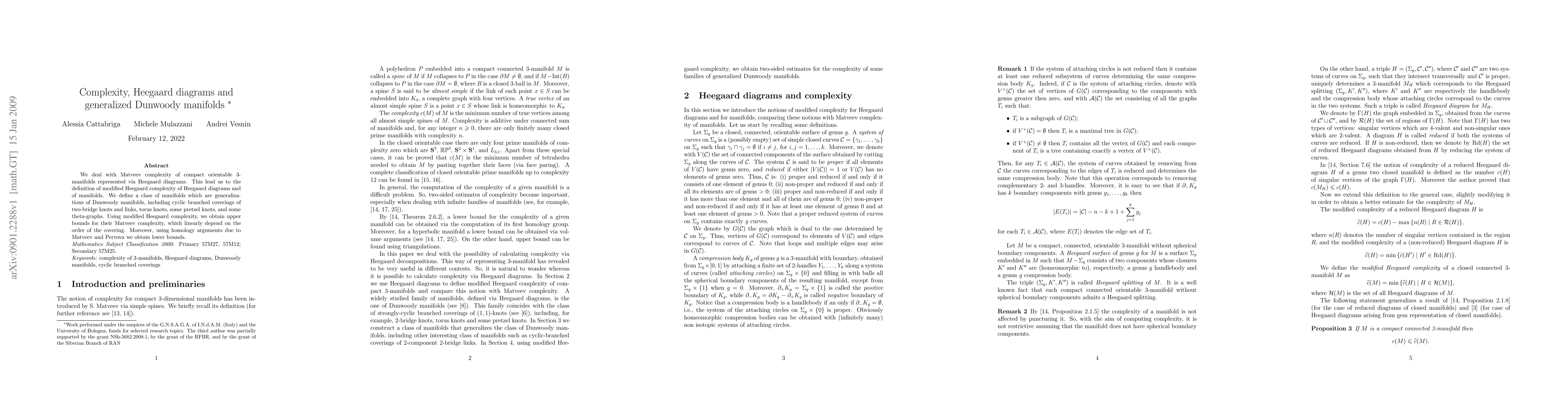 This paper introduces modified Heegaard complexity for compact orientable 3-manifolds, defining a class of generalized Dunwoody manifolds and establishing upper and lower bounds for their Matveev complexity that scale linearly with the order of cyclic branched coverings.