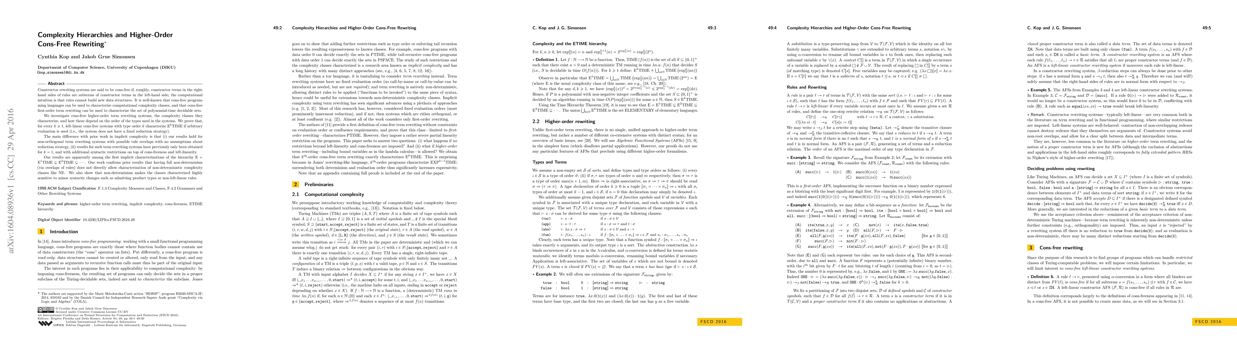 This paper explores cons-free higher-order term rewriting systems and their characterization of complexity classes E$^k$TIME, demonstrating that left-linear cons-free systems of type order k characterize E$^k$TIME under arbitrary evaluation. It extends prior work by applying to non-orthogonal systems with rule overlaps, without restricting reduction strategies, and shows sensitivity to syntactic changes when introducing non-determinism.