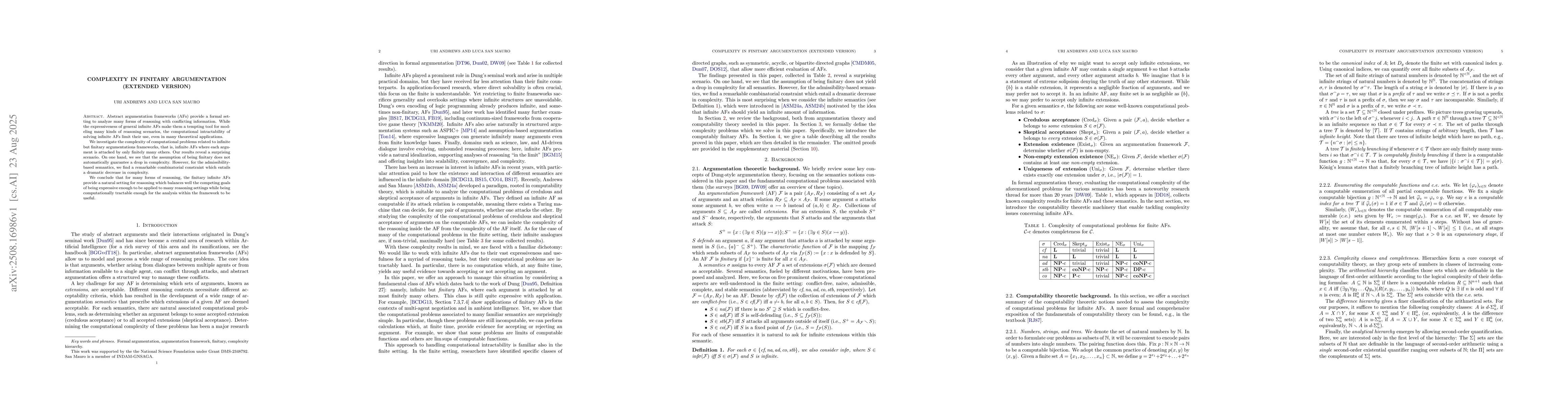 Abstract argumentation frameworks (AFs) provide a formal setting to analyze many forms of reasoning with conflicting information. While the expressiveness of general infinite AFs make them a tempting tool for modeling many kinds of reasoning scenarios, the computational intractability of solving infinite AFs limit their use, even in many theoretical applications. We investigate the complexity of computational problems related to infinite but finitary argumentations frameworks, that is, infinite AFs where each argument is attacked by only finitely many others. Our results reveal a surprising scenario. On one hand, we see that the assumption of being finitary does not automatically guarantee a drop in complexity. However, for the admissibility-based semantics, we find a remarkable combinatorial constraint which entails a dramatic decrease in complexity. We conclude that for many forms of reasoning, the finitary infinite AFs provide a natural setting for reasoning which balances well the competing goals of being expressive enough to be applied to many reasoning settings while being computationally tractable enough for the analysis within the framework to be useful.