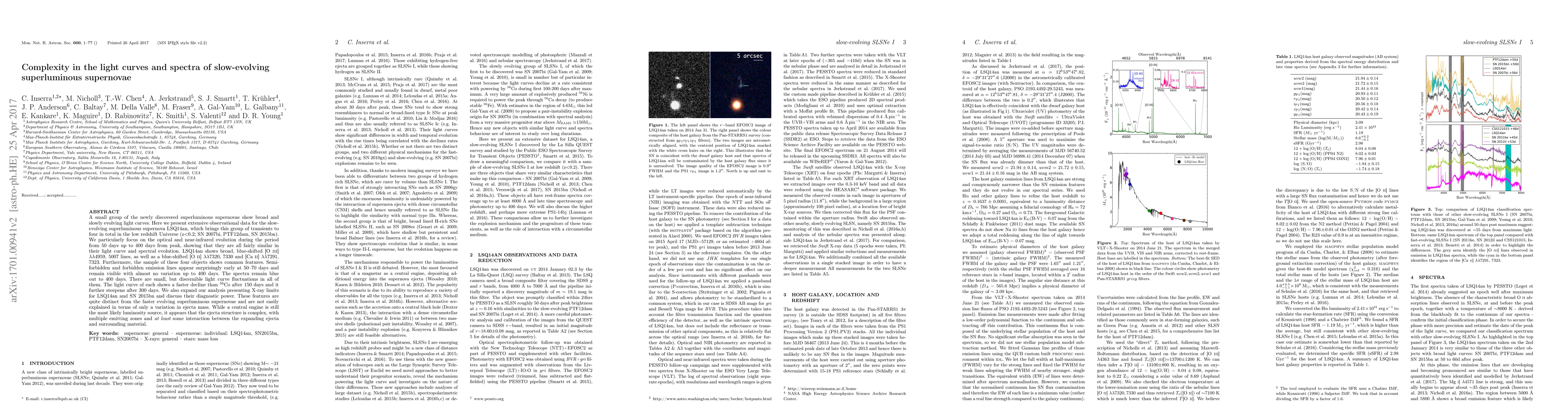 This paper presents observational data for the slow-evolving superluminous supernova LSQ14an, expanding the known sample to four objects. The study reveals common features in their light curves and spectra, including persistent blue-shifted emission lines and fluctuations in the light curves, suggesting a complex ejecta structure and possible interaction with the surrounding material.