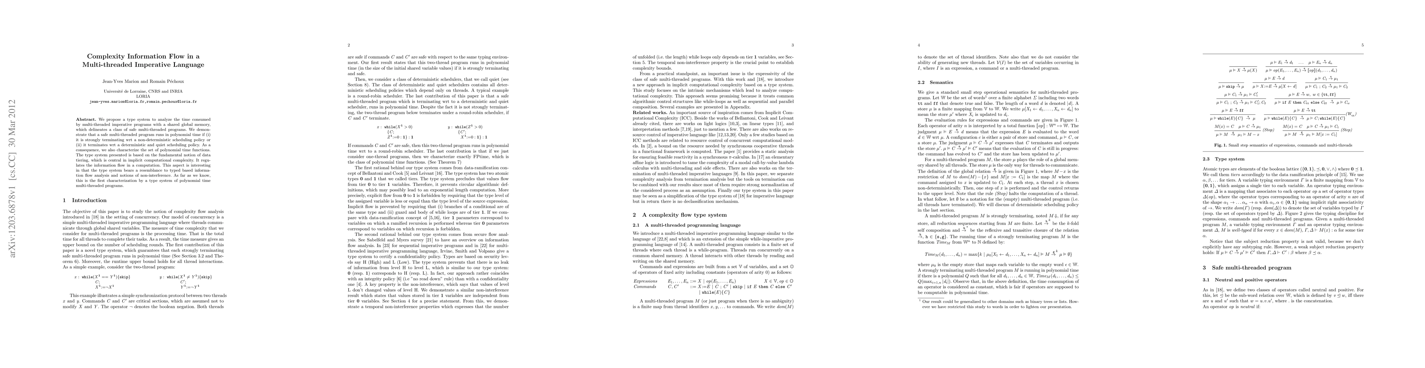 This paper introduces a type system for analyzing the time complexity of multi-threaded imperative programs, focusing on safe programs with shared global memory. It demonstrates that safe programs run in polynomial time under certain scheduling policies, and characterizes the set of polynomial time functions.