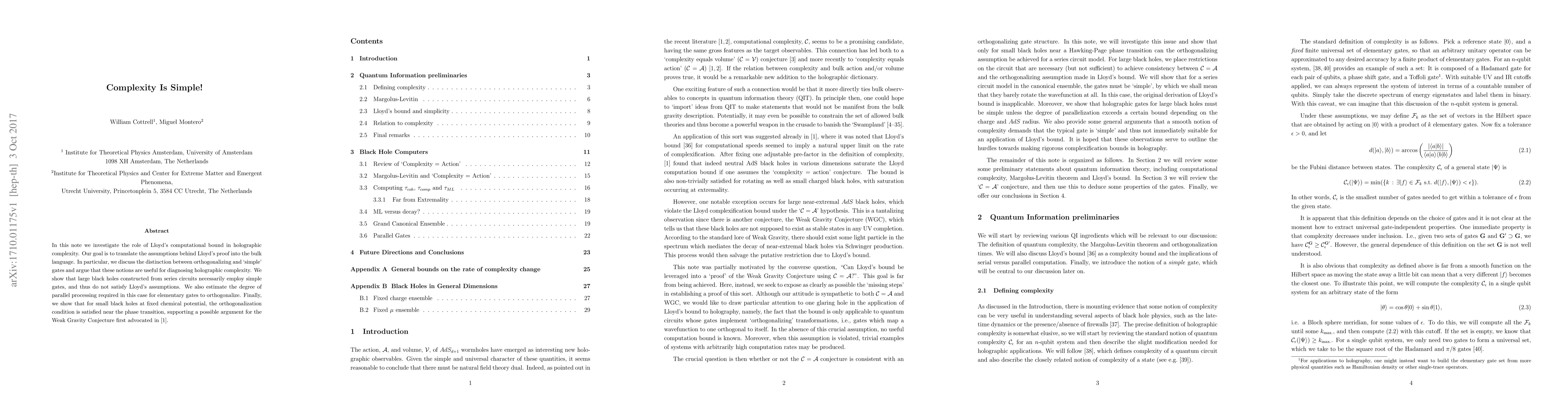 In this note we investigate the role of Lloyd's computational bound in holographic complexity. Our goal is to translate the assumptions behind Lloyd's proof into the bulk language. In particular, we discuss the distinction between orthogonalizing and `simple' gates and argue that these notions are useful for diagnosing holographic complexity. We show that large black holes constructed from series circuits necessarily employ simple gates, and thus do not satisfy Lloyd's assumptions. We also estimate the degree of parallel processing required in this case for elementary gates to orthogonalize. Finally, we show that for small black holes at fixed chemical potential, the orthogonalization condition is satisfied near the phase transition, supporting a possible argument for the Weak Gravity Conjecture first advocated in Brown et al.