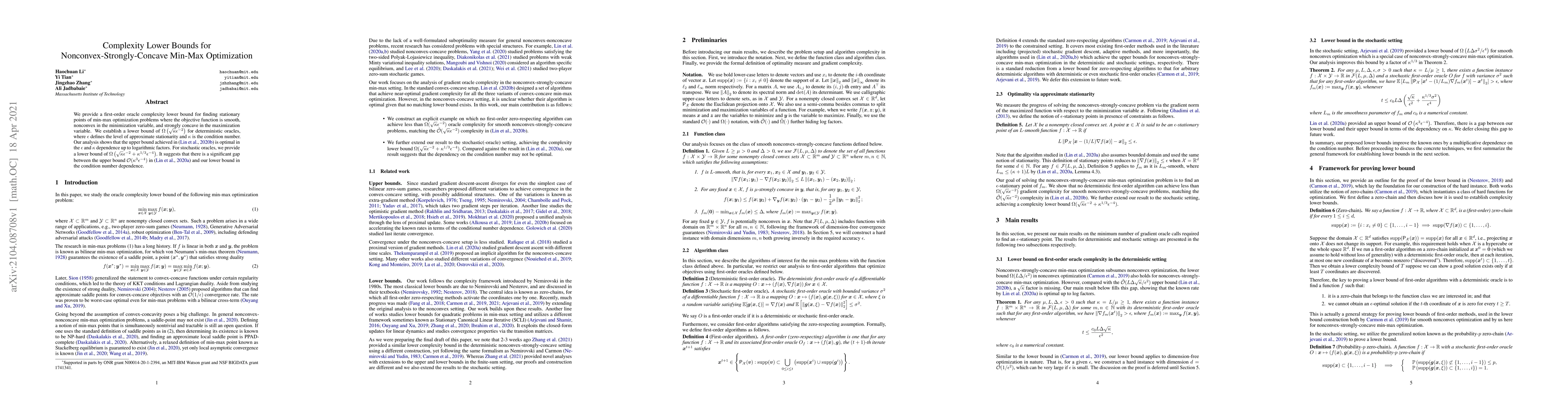 This paper establishes lower bounds for finding stationary points in min-max optimization problems with nonconvex objective functions and strongly concave maximization objectives, revealing a significant gap between theoretical and practical complexities.