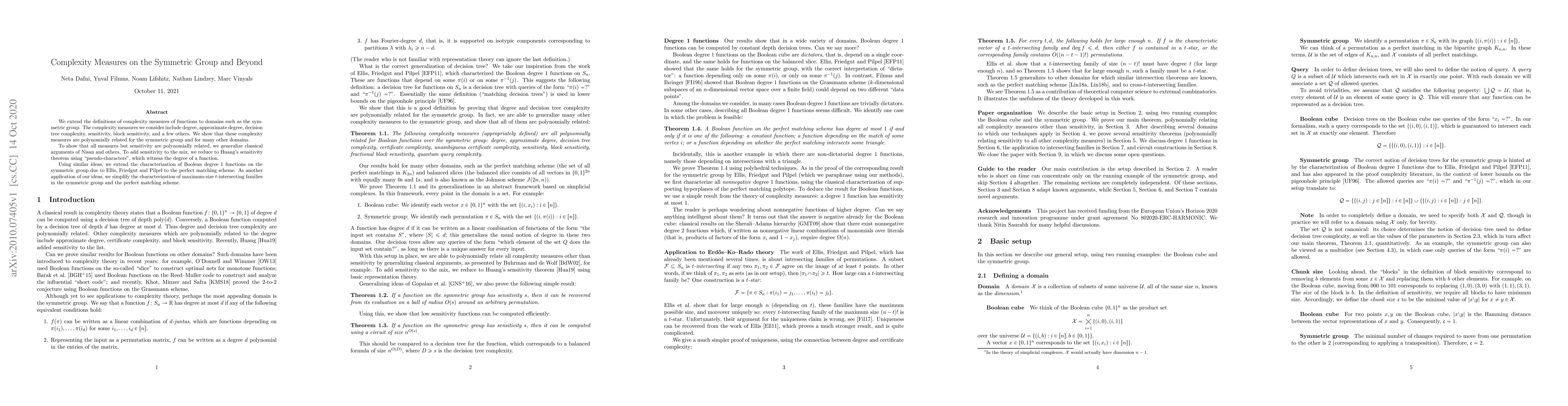 This research paper explores complexity measures on the symmetric group and other domains, showing that many measures are polynomially related, with some exceptions like sensitivity.