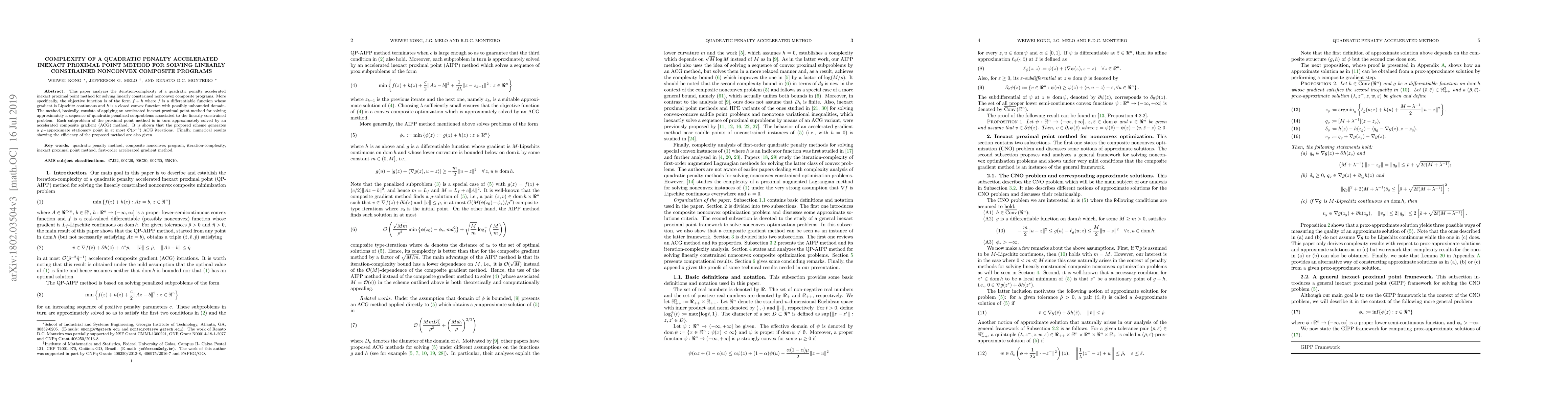 This paper analyzes the iteration-complexity of a quadratic penalty accelerated inexact proximal point method for solving linearly constrained nonconvex composite programs. More specifically, the objective function is of the form $f + h$ where $f$ is a differentiable function whose gradient is Lipschitz continuous and $h$ is a closed convex function with bounded domain. The method, basically, consists of applying an accelerated inexact proximal point method for solving approximately a sequence of quadratic penalized subproblems associated to the linearly constrained problem. Each subproblem of the proximal point method is in turn approximately solved by an accelerated composite gradient (ACG) method. It is shown that the proposed scheme generates a $\rho$-approximate stationary point in at most ${\cal{O}}(\rho^{-3})$ ACG iterations. Finally, numerical results showing the efficiency of the proposed method are also given.