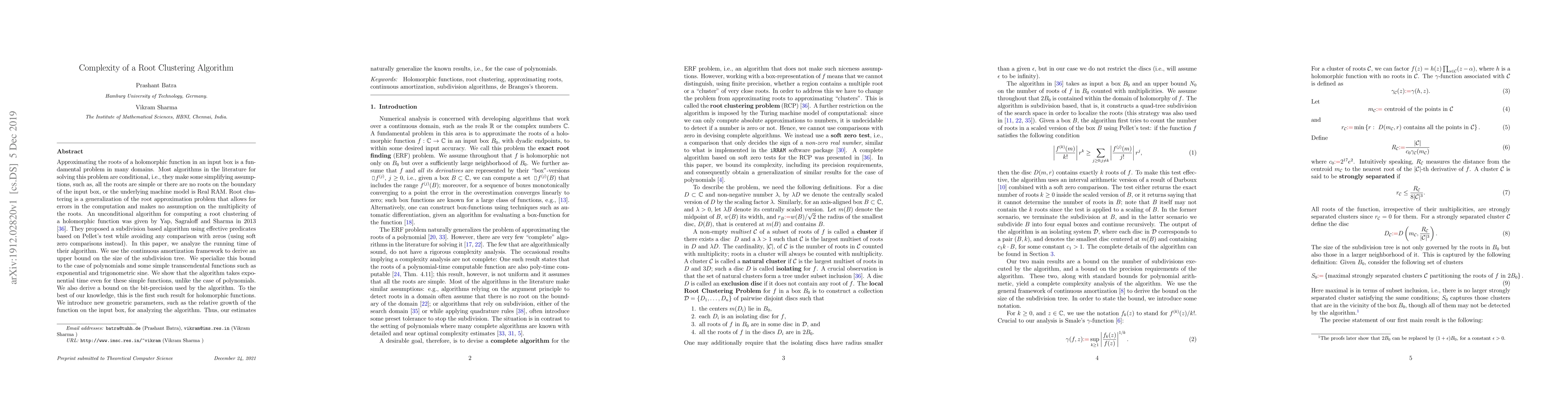 Approximating the roots of a holomorphic function in an input box is a fundamental problem in many domains. Most algorithms in the literature for solving this problem are conditional, i.e., they make some simplifying assumptions, such as, all the roots are simple or there are no roots on the boundary of the input box, or the underlying machine model is Real RAM. Root clustering is a generalization of the root approximation problem that allows for errors in the computation and makes no assumption on the multiplicity of the roots. An unconditional algorithm for computing a root clustering of a holomorphic function was given by Yap, Sagraloff and Sharma in 2013. They proposed a subdivision based algorithm using effective predicates based on Pellet's test while avoiding any comparison with zeros (using soft zero comparisons instead). In this paper, we analyze the running time of their algorithm. We use the continuous amortization framework to derive an upper bound on the size of the subdivision tree. We specialize this bound to the case of polynomials and some simple transcendental functions such as exponential and trigonometric sine. We show that the algorithm takes exponential time even for these simple functions, unlike the case of polynomials. We also derive a bound on the bit-precision used by the algorithm. To the best of our knowledge, this is the first such result for holomorphic functions. We introduce new geometric parameters, such as the relative growth of the function on the input box, for analyzing the algorithm. Thus, our estimates naturally generalize the known results, i.e., for the case of polynomials.