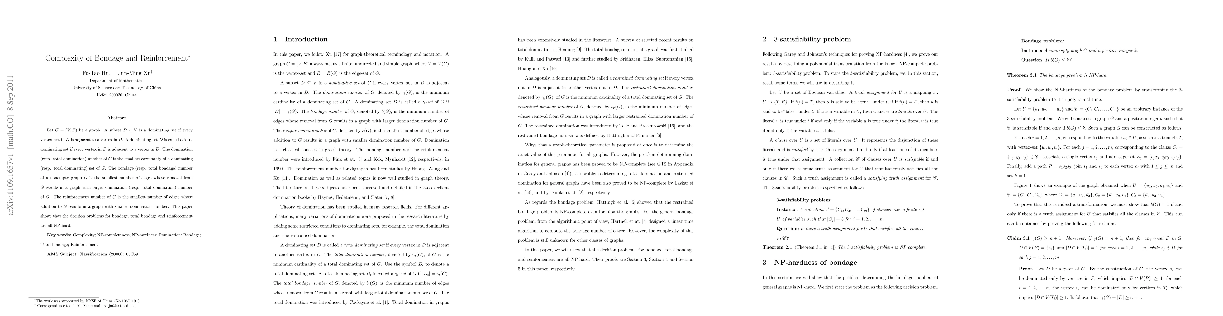 Let $G=(V,E)$ be a graph. A subset $D\subseteq V$ is a dominating set if every vertex not in $D$ is adjacent to a vertex in $D$. A dominating set $D$ is called a total dominating set if every vertex in $D$ is adjacent to a vertex in $D$. The domination (resp. total domination) number of $G$ is the smallest cardinality of a dominating (resp. total dominating) set of $G$. The bondage (resp. total bondage) number of a nonempty graph $G$ is the smallest number of edges whose removal from $G$ results in a graph with larger domination (resp. total domination) number of $G$. The reinforcement number of $G$ is the smallest number of edges whose addition to $G$ results in a graph with smaller domination number. This paper shows that the decision problems for bondage, total bondage and reinforcement are all NP-hard.