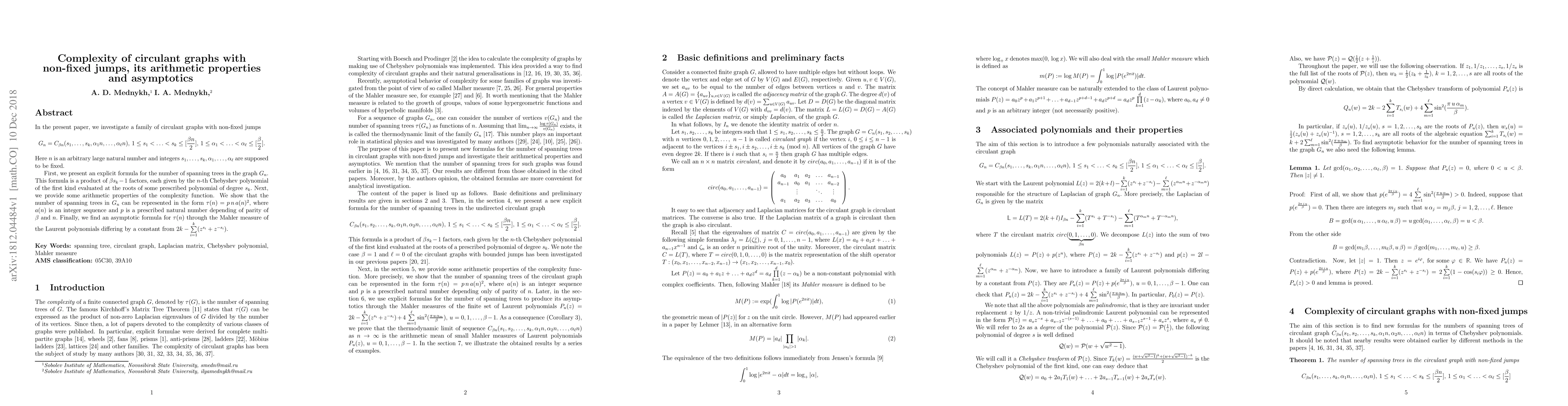 This paper investigates circulant graphs with non-fixed jumps, finding an explicit formula for spanning trees, arithmetic properties, and an asymptotic formula using Mahler measure, which can help understand the complexity of these graphs.