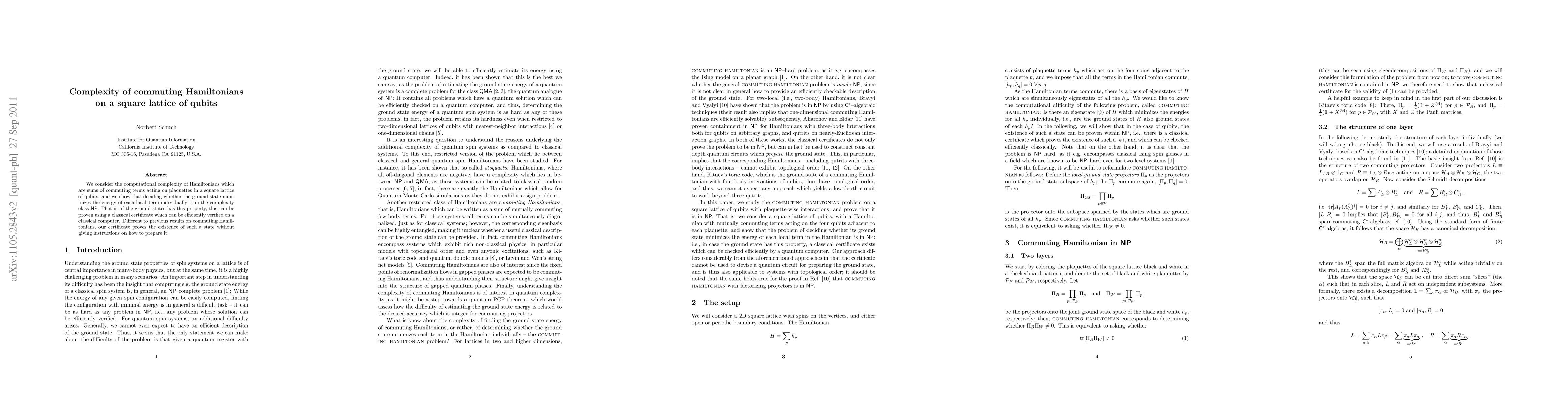 This paper explores the computational complexity of commuting Hamiltonians on a square lattice of qubits, demonstrating that verifying whether the ground state minimizes each local term individually is in NP. Unlike previous studies, the proof does not provide a method to prepare such a state.