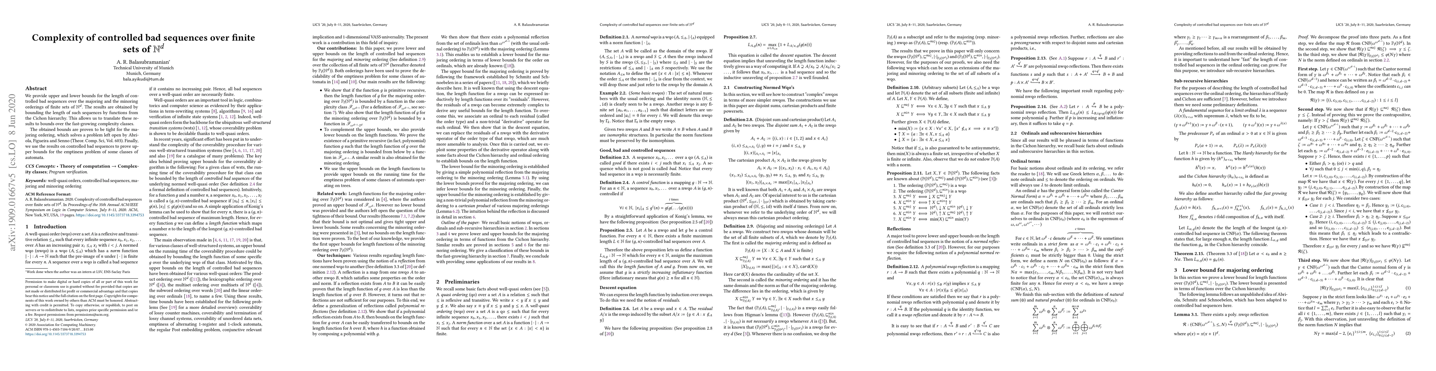 The paper establishes upper and lower bounds for the length of controlled bad sequences over finite sets in mathematical logic, with implications for automata complexity classes.