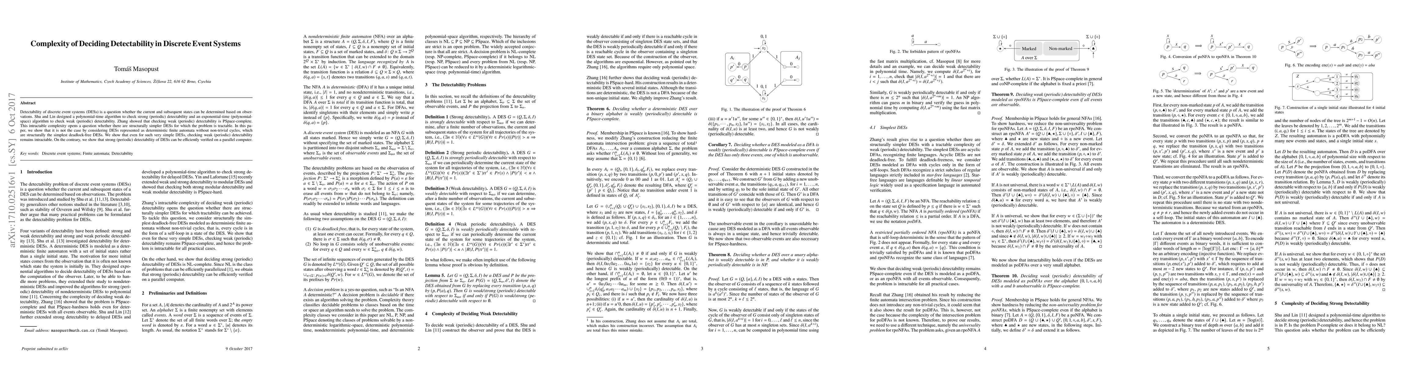 Detectability of discrete event systems (DESs) is a question whether the current and subsequent states can be determined based on observations. Shu and Lin designed a polynomial-time algorithm to check strong (periodic) detectability and an exponential-time (polynomial-space) algorithm to check weak (periodic) detectability. Zhang showed that checking weak (periodic) detectability is PSpace-complete. This intractable complexity opens a question whether there are structurally simpler DESs for which the problem is tractable. In this paper, we show that it is not the case by considering DESs represented as deterministic finite automata without non-trivial cycles, which are structurally the simplest deadlock-free DESs. We show that even for such very simple DESs, checking weak (periodic) detectability remains intractable. On the contrary, we show that strong (periodic) detectability of DESs can be efficiently verified on a parallel computer.