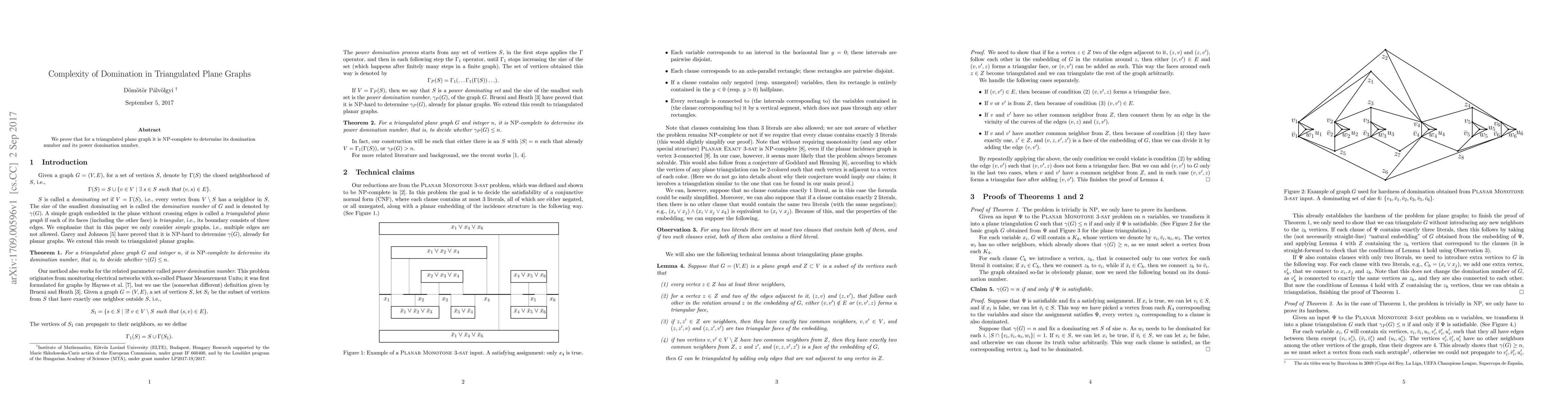We prove that for a triangulated plane graph it is NP-complete to determine its domination number and its power domination number.