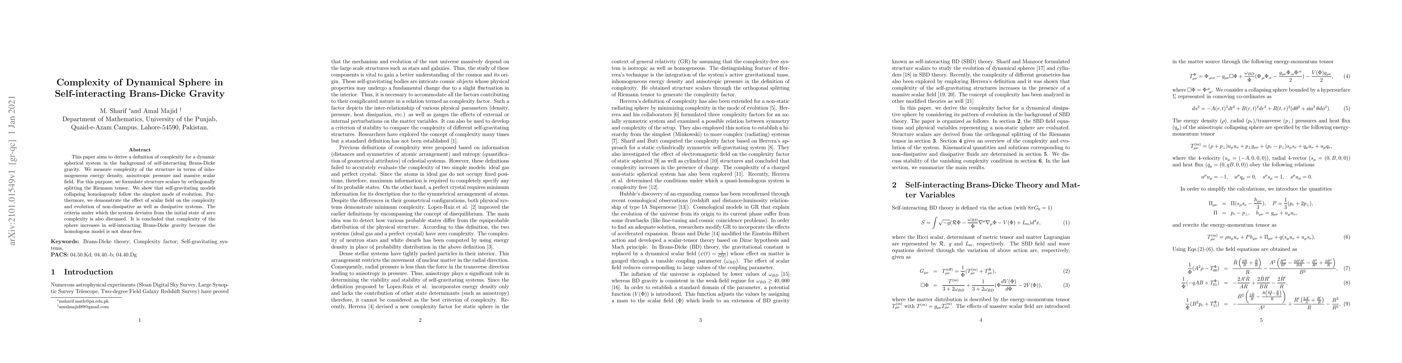 This paper defines complexity for a dynamic spherical system in self-interacting Brans-Dicke gravity, measuring it via inhomogeneous energy density, anisotropic pressure, and scalar field. It finds that self-gravitating models evolve in the simplest manner, while scalar fields influence the complexity and evolution of both non-dissipative and dissipative systems, leading to increased complexity due to non-shear-free homologous models.