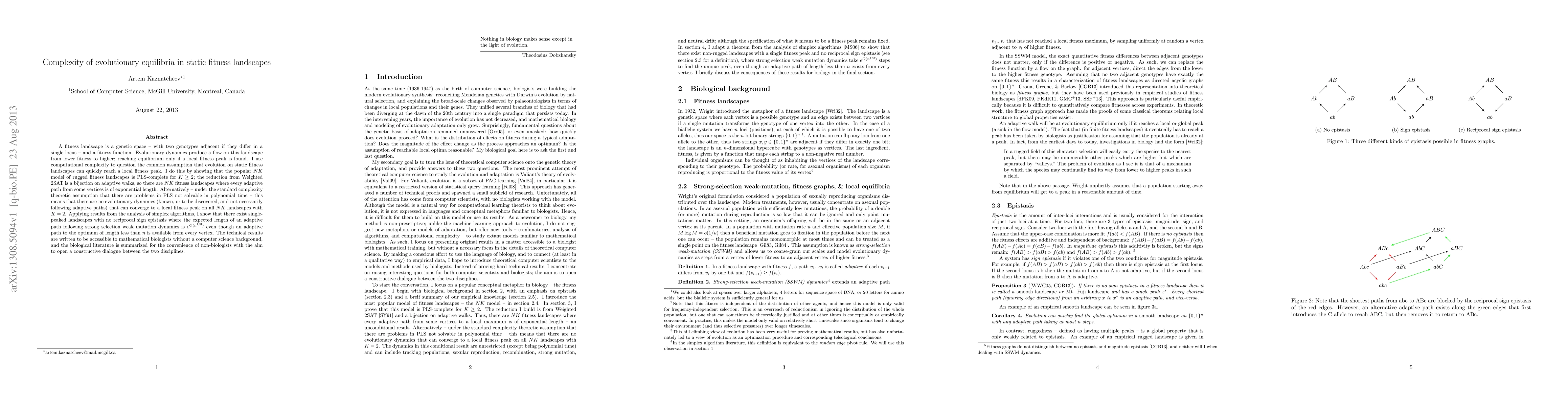 This paper explores the computational complexity of evolutionary dynamics in static fitness landscapes, demonstrating that reaching local fitness peaks can be exponentially difficult for certain models, such as the NK model for K >= 2. It argues that under standard complexity assumptions, there are no known evolutionary dynamics that can efficiently reach local peaks on all NK landscapes with K = 2.