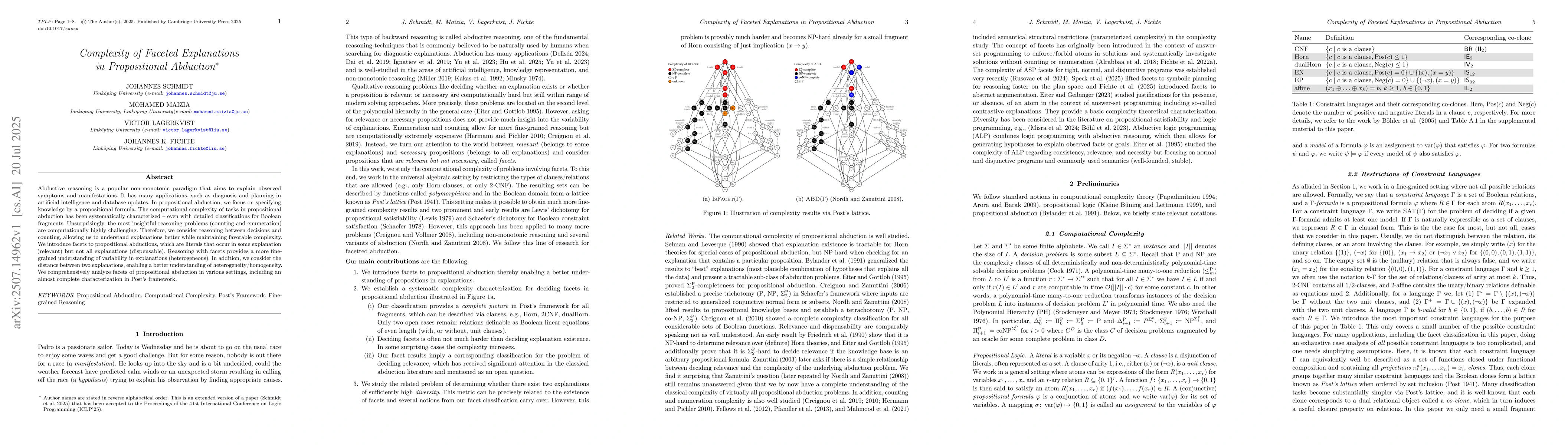 Abductive reasoning is a popular non-monotonic paradigm that aims to explain observed symptoms and manifestations. It has many applications, such as diagnosis and planning in artificial intelligence and database updates. In propositional abduction, we focus on specifying knowledge by a propositional formula. The computational complexity of tasks in propositional abduction has been systematically characterized - even with detailed classifications for Boolean fragments. Unsurprisingly, the most insightful reasoning problems (counting and enumeration) are computationally highly challenging. Therefore, we consider reasoning between decisions and counting, allowing us to understand explanations better while maintaining favorable complexity. We introduce facets to propositional abductions, which are literals that occur in some explanation (relevant) but not all explanations (dispensable). Reasoning with facets provides a more fine-grained understanding of variability in explanations (heterogeneous). In addition, we consider the distance between two explanations, enabling a better understanding of heterogeneity/homogeneity. We comprehensively analyze facets of propositional abduction in various settings, including an almost complete characterization in Post's framework.