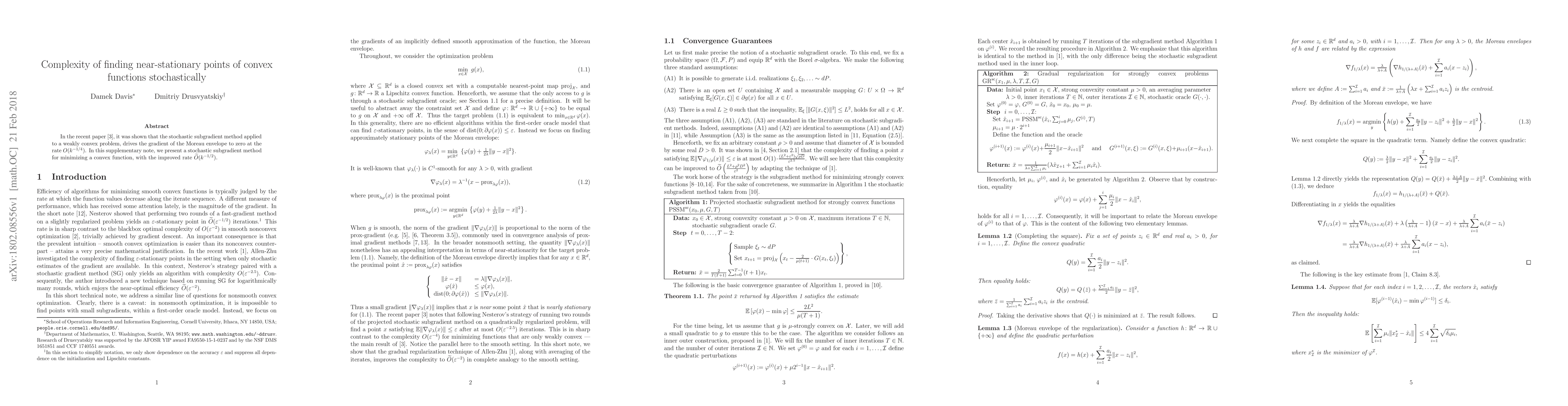 This paper introduces a stochastic subgradient method that improves the convergence rate for finding near-stationary points of convex functions, achieving an improved rate of $\widetilde O(k^{-1/2})$ compared to previous methods. The method is designed to handle weakly convex optimization problems.