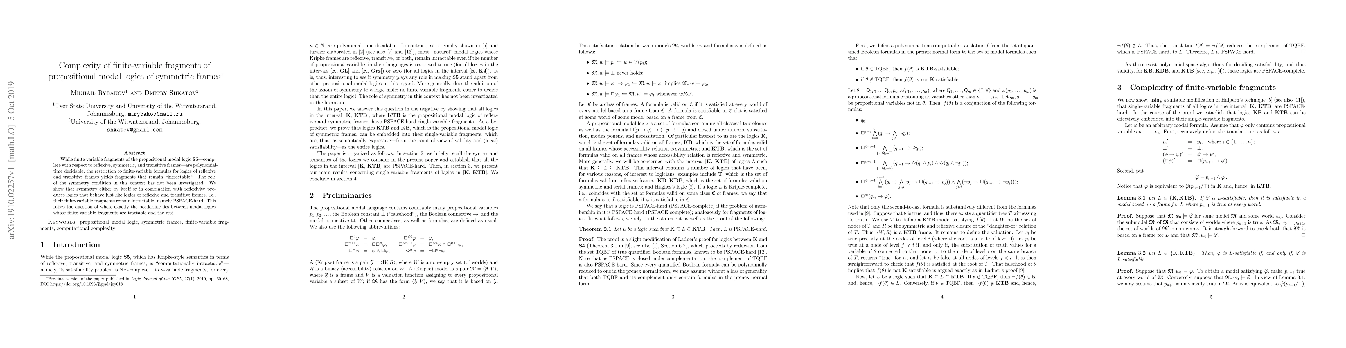 While finite-variable fragments of the propositional modal logic S5--complete with respect to reflexive, symmetric and transitive frames--are polynomial-time decidable, the restriction to finite-variable formulas for logics of reflexive and transitive frames yields fragments that remain "intractable." The role of the symmetry condition in this context has not been investigated. We show that symmetry either by itself or in combination with reflexivity produces logics that behave just like logics of reflexive and transitive frames, i.e. their finite-variable fragments remain intractable, namely PSPACE-hard. This raises the question of where exactly the borderline lies between modal logics whose finite-variable fragments are tractable and the rest.