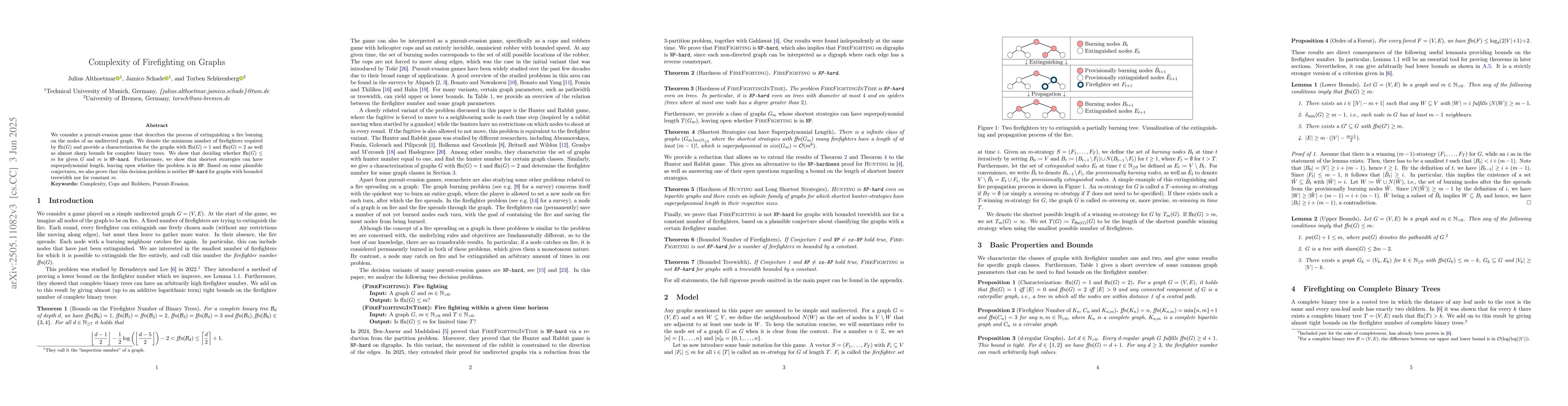 The paper presents a characterization of graphs with low firefighter numbers and establishes the NP-hardness of the firefighter decision problem.