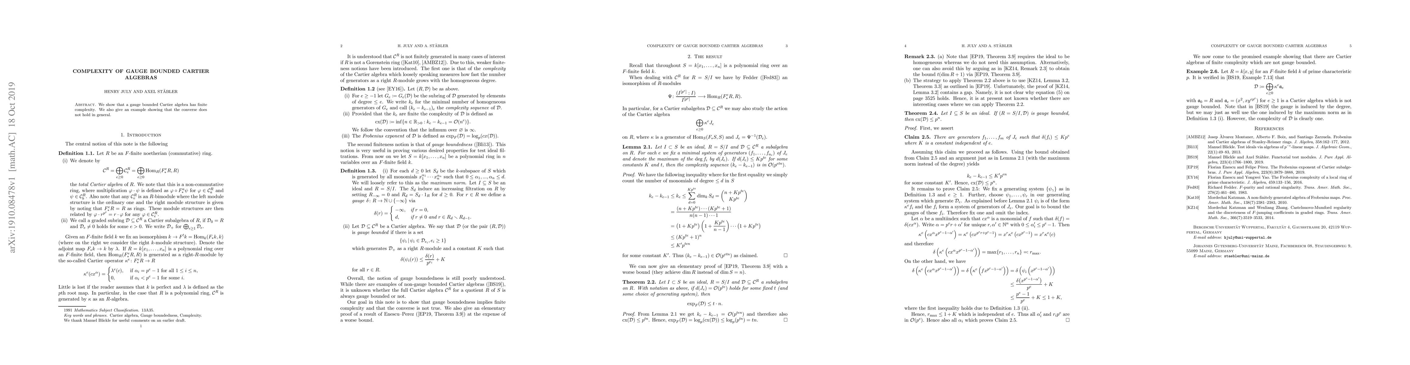 We show that a gauge bounded Cartier algebra has finite complexity. We also give an example showing that the converse does not hold in general.