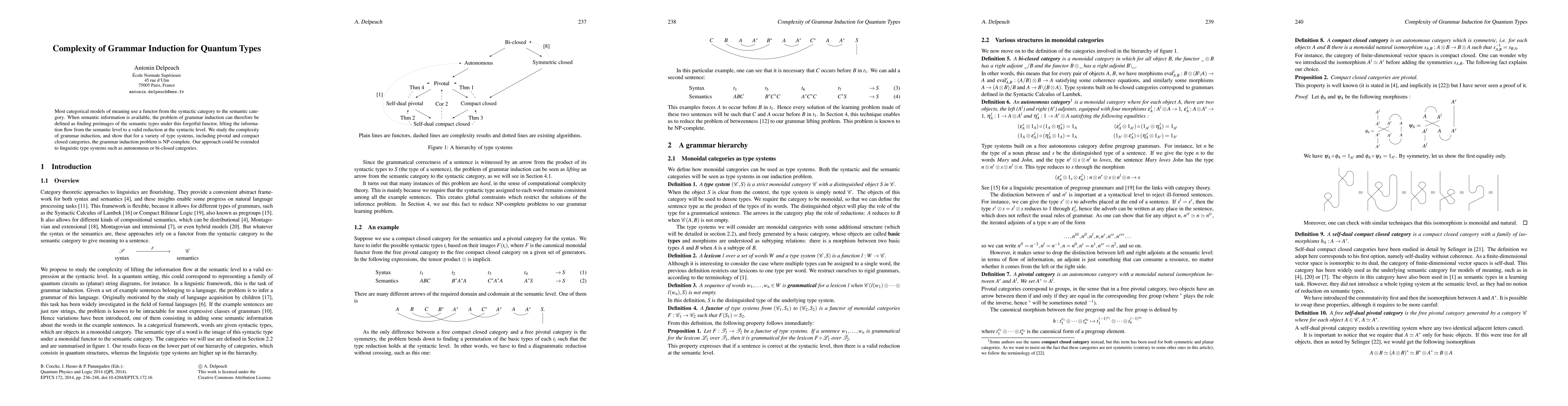 Most categorical models of meaning use a functor from the syntactic category to the semantic category. When semantic information is available, the problem of grammar induction can therefore be defined as finding preimages of the semantic types under this forgetful functor, lifting the information flow from the semantic level to a valid reduction at the syntactic level. We study the complexity of grammar induction, and show that for a variety of type systems, including pivotal and compact closed categories, the grammar induction problem is NP-complete. Our approach could be extended to linguistic type systems such as autonomous or bi-closed categories.
